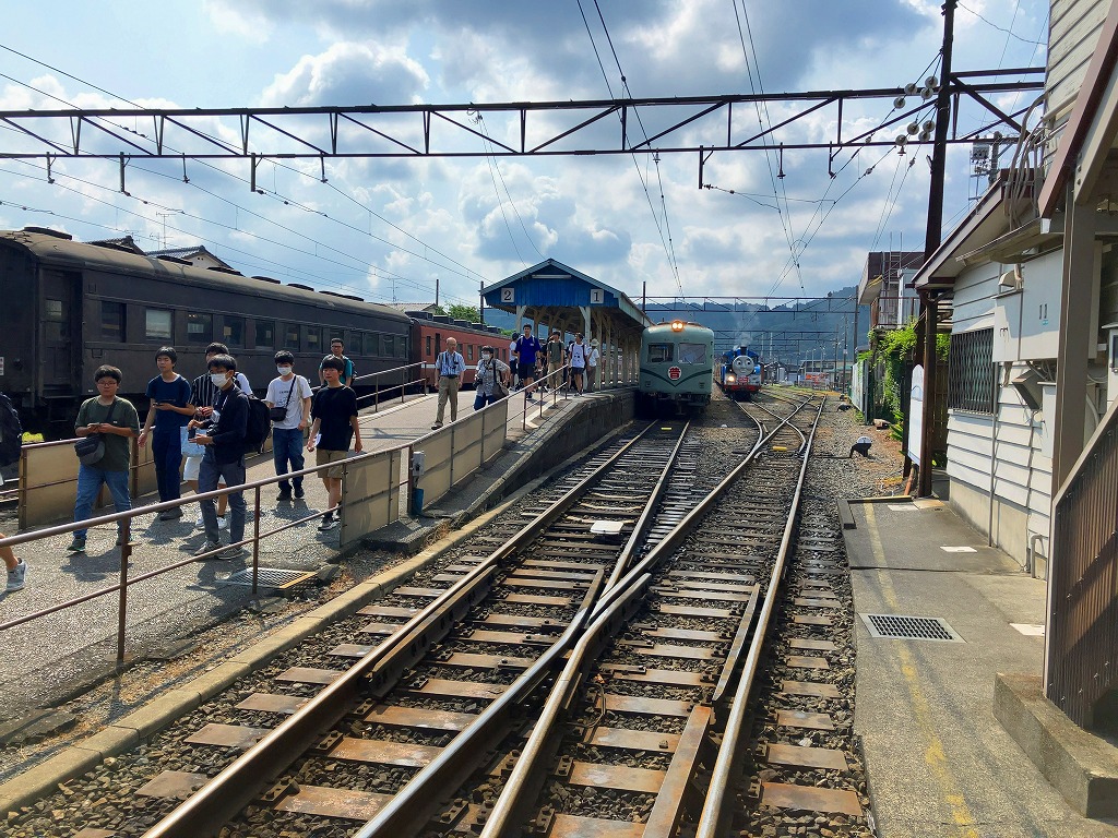 大井川鉄道でのSL列車は1976(昭和51)年7月9日(金)の運転開始。1927(昭和2)年の開業時は蒸気動力であったから、正確には復活である。1942(昭和17)年から北海道のローカル線を走り、1975(昭和50)年11月に釧路から新金谷へやってきた蒸気機関車C11227が、オハフ33+オハ35+オハフ33の3両の古い客車を牽引し、金谷11:41→13:01千頭、千頭14:21→15:53金谷の一日1往復のダイヤで、金土日月曜日の運転と火水木曜日の整備・保守というローテーションで走り始めた。以後、1979(昭和54)年8月の国鉄山口線が続き、大井川鉄道でもSLや客車を増やし、現在では北海道から熊本県まで全国各地で行楽期や週末を中心に観光SL列車が走る。それでもほぼ毎日のようにSLが走る路線は、国内ではいまだに大井川鐵道のみである。