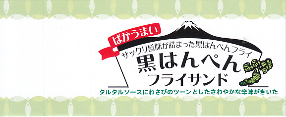 2018(平成30)年の4月までに400円で発売。黒はんぺんをフライにして、わさび漬けを混ぜたタルタルソースとともに、耳なし食パンに挟んだものを4切れ、サンドイッチ向けプラ容器にぴったり詰めて、商品名と宣伝文を書いたボール紙の帯で留める。味はイワシつみれ揚げのマヨネーズサンドといった感じで、風味の不思議な合わせ方が興味深い。価格は2019年時点で450円、2020年時点で500円、2022年時点で550円、2023年7月から600円、2025年時点で650円。
