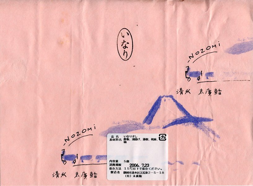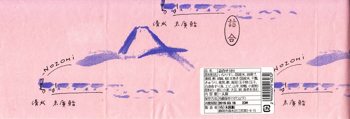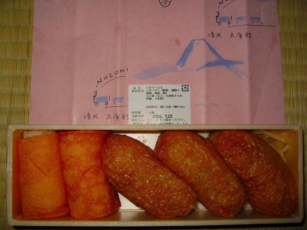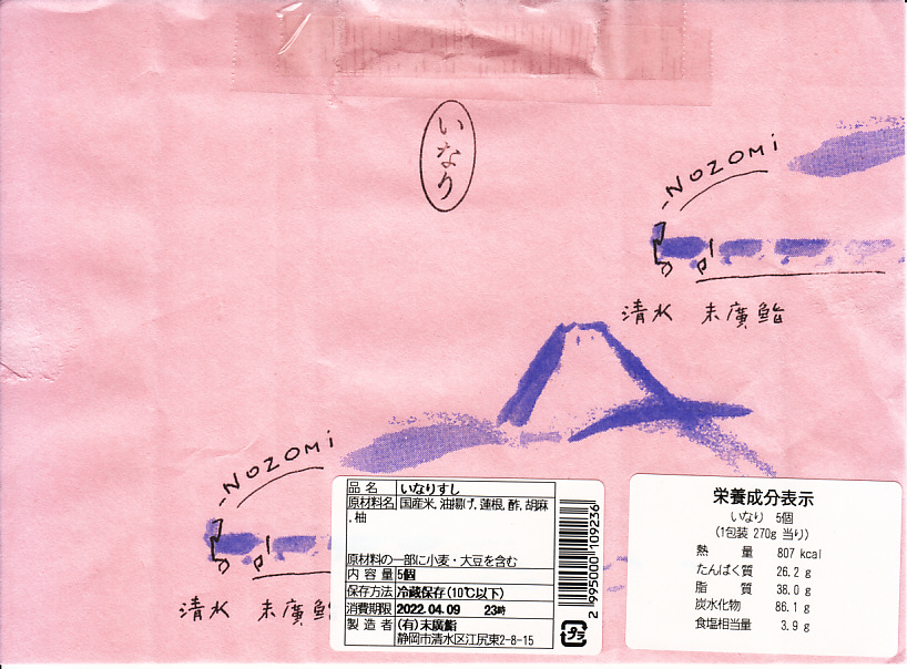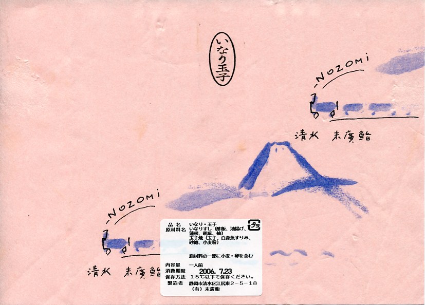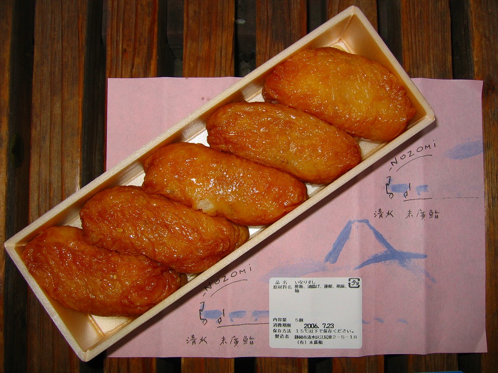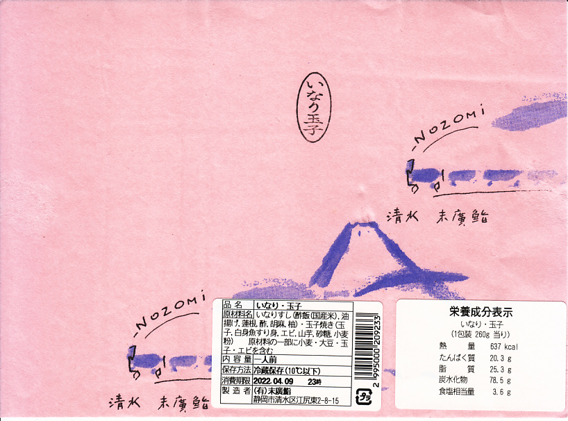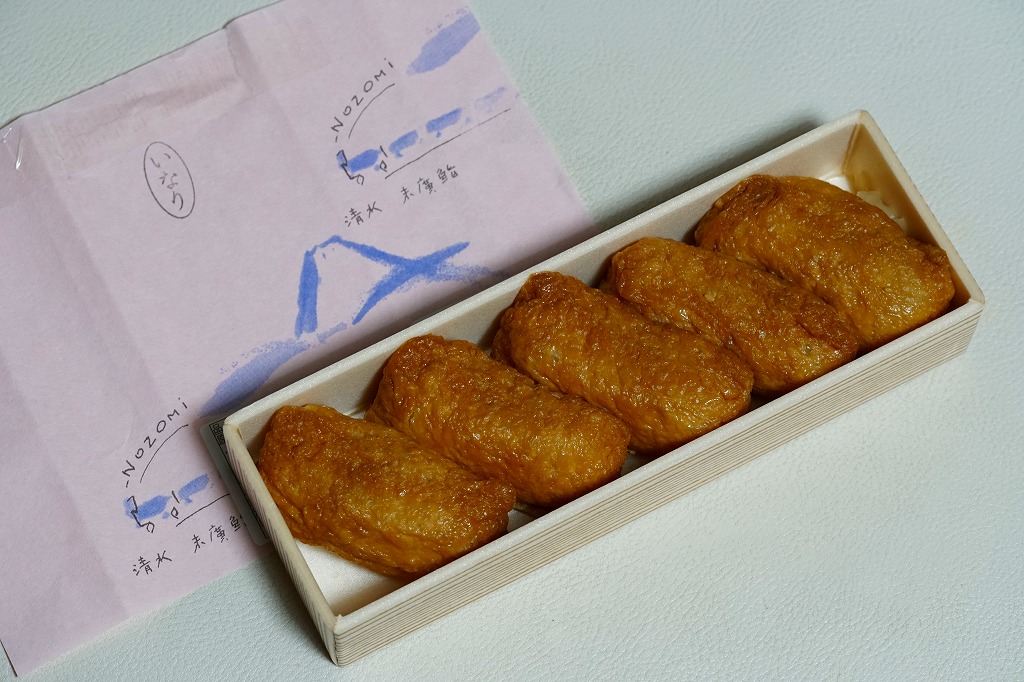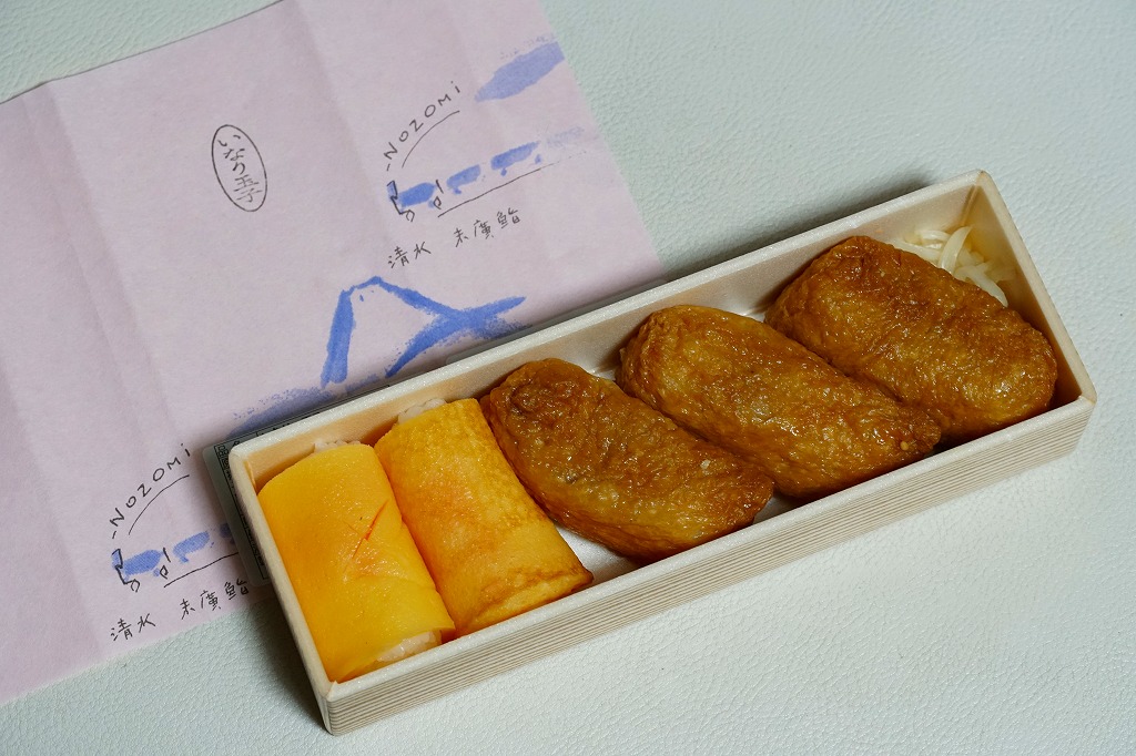 2000年代に清水駅弁と紹介され始めた、駅売り弁当類群のひとつ。細長い容器の中に、いなりずし3個と玉子巻2個を詰めた惣菜弁当。ピンク色の掛紙には富士山と、「NOZOMi」と書かれた蒸気機関車牽引と思われる列車が描かれる。価格は2006年時点で472円、2015年時点で453円、2022年時点で497円。