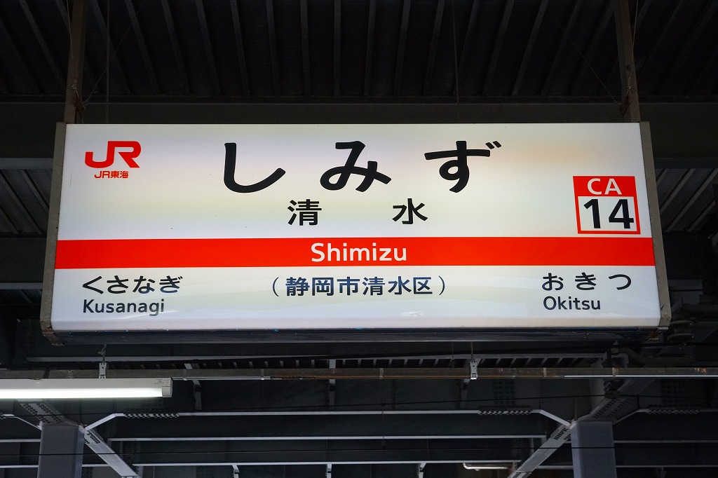 静岡駅から電車で3駅10分。清水市はかつて、静岡県の中部で太平洋の駿河湾に面する人口20万人以上の港町で、日本平や美保の松原の美景、次郎長、サッカーなど独特の文化を持っていたが、2003年に静岡市と合併してしまい、今は静岡市清水区。駅弁は1953(昭和28)年から売られたが1990年代に撤退。駅のキヨスクに入荷する地元の寿司店の商品が、まれに駅弁と紹介される。1889(明治22)年2月1日開業、静岡県静岡市清水区真砂町1−1。