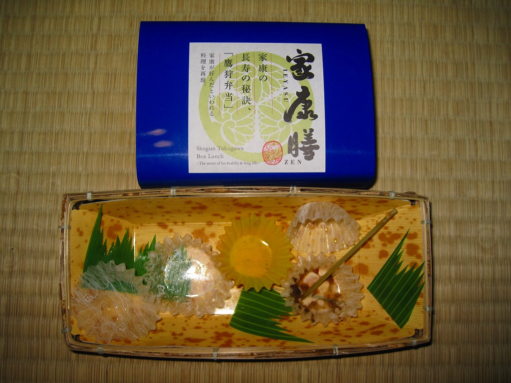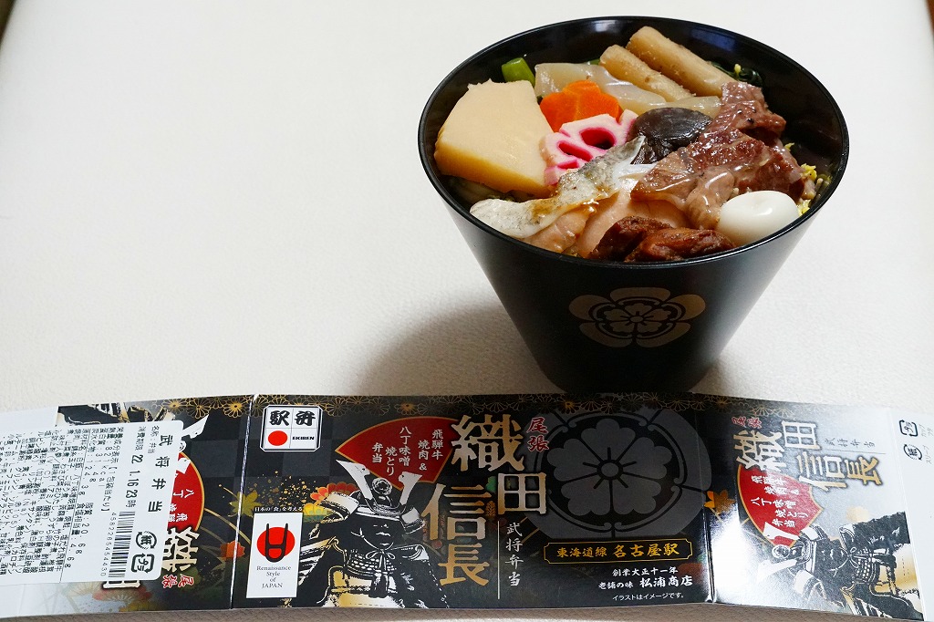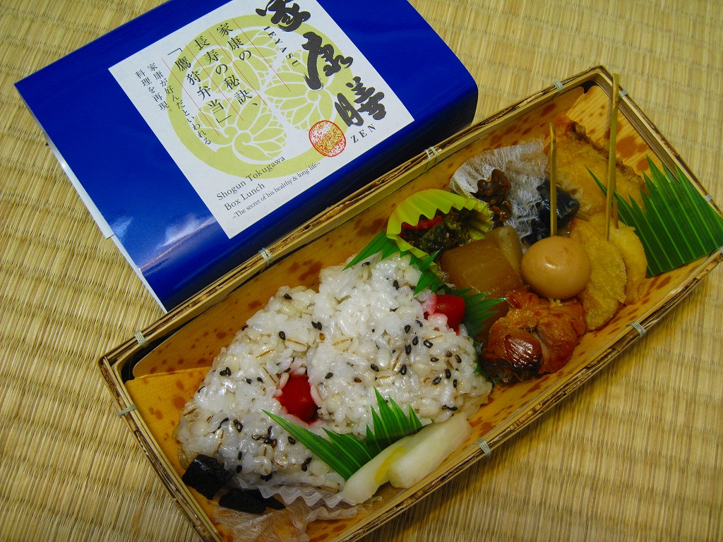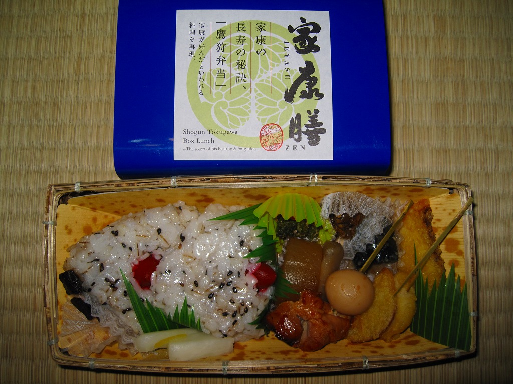 名古屋開府400年を記念して、そして戦国時代の三英傑にちなむ駅弁の続編として、2010(平成22)年3月6日に発売。竹皮編みの長方形の容器に、駅弁の名前などを書いた厚めで蒼い掛紙を巻く。中身は麦飯のおにぎり2個と、焼き味噌、鶏とうずら卵の串、酢ごぼう、ナスおひたし、シジミ佃煮、タイとレンコンとサツマイモの天ぷら、ダイコン煮、インゲンごま和えなど。
