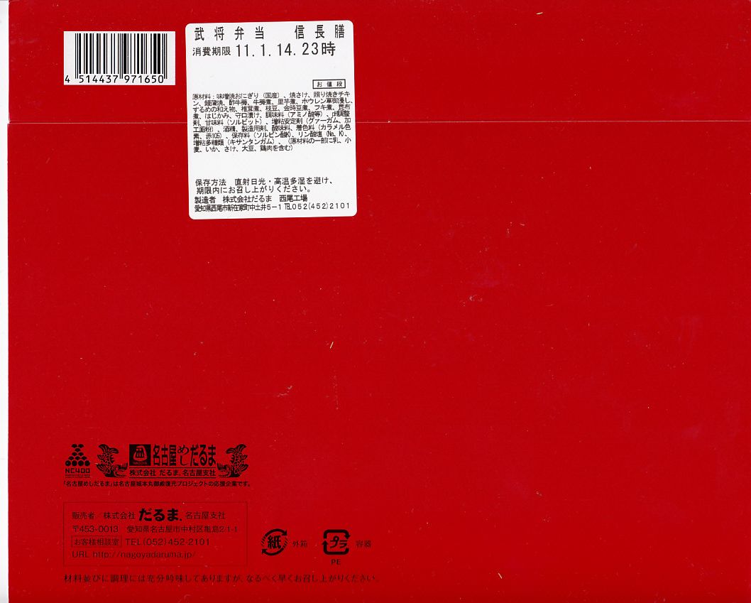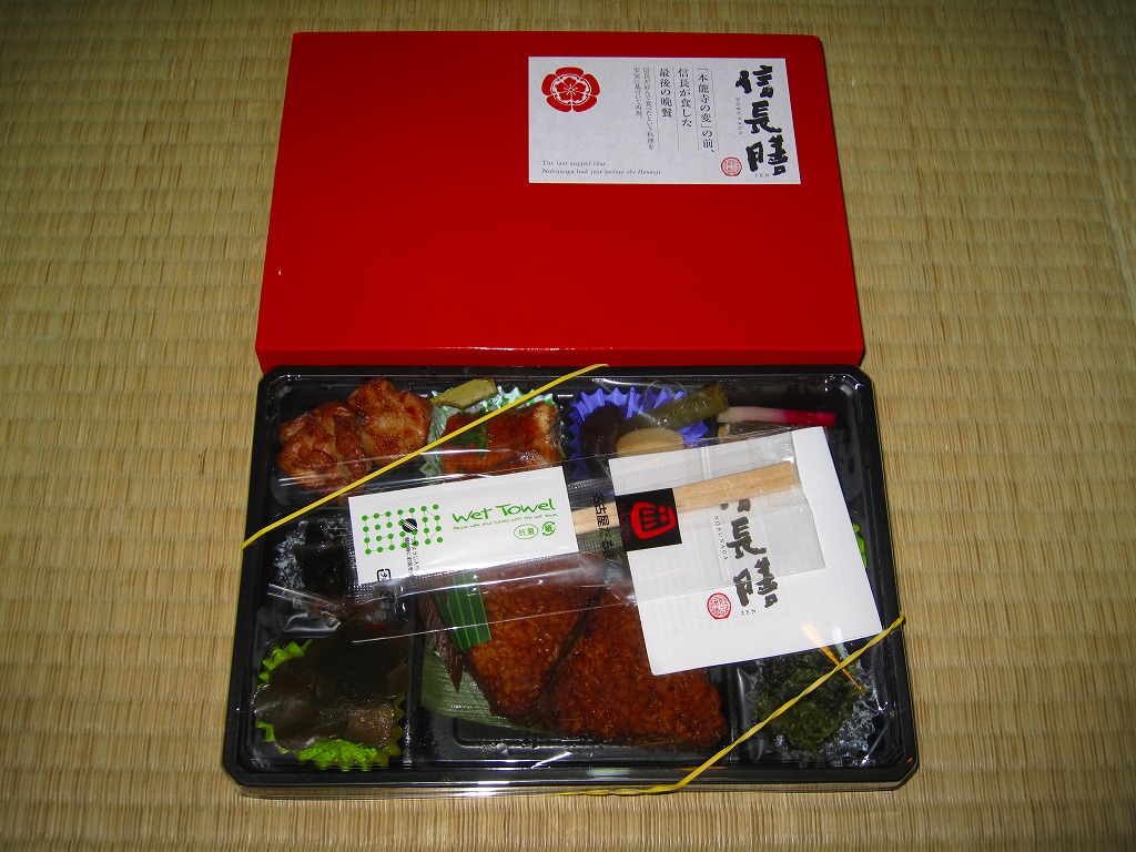 名古屋駅では人気の駅弁となり、後に「豊臣膳」「家康膳」も発売、愛知出身の戦国武将の三英傑がシリーズで揃うことになる。一方で今回の京王百貨店の駅弁大会では、目玉商品のひとつとしてチラシに掲載されたにもかかわらず、会場では三英傑揃って閉店まで山積みという惨敗を喫していた。この京王百貨店の駅弁大会で引退か。