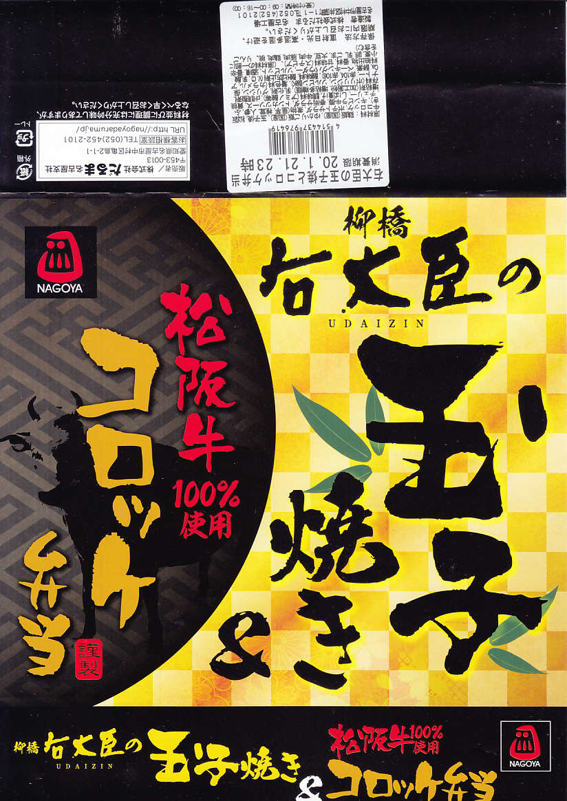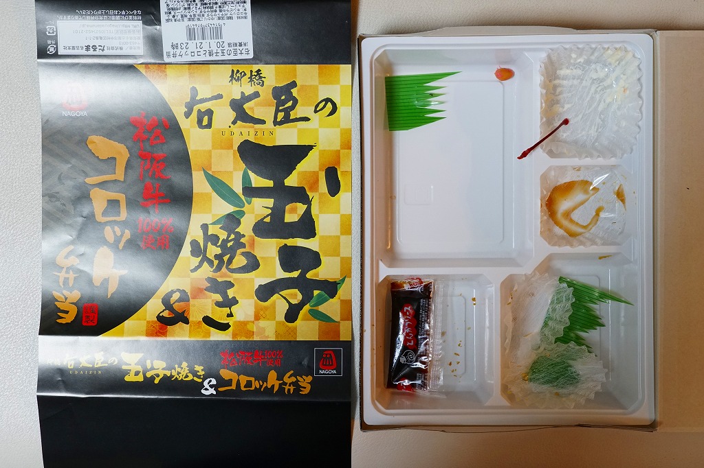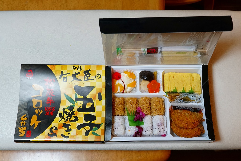 2019(令和元)年の5月までに発売か。市販の大きな惣菜弁当向けボール紙製容器に、鶏飯とゆかりごはんの俵飯を4個ずつと、名古屋駅前の柳橋中央市場で玉子焼の名店である柳橋右大臣を名乗るきな玉子焼、きんぴらごぼうと春雨サラダ、松阪牛100%使用というコロッケとソース、サトイモやシイタケなどの煮物、ポテトサラダと黄桃とチェリーを詰める。量の多さと脈絡のない内容が個性的。御飯のおかずに困る印象はある。1年弱の販売か。