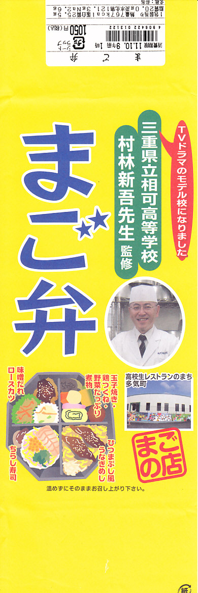 2011(平成23)年10月までに商品化された、三重県立相可高等学校村林新吾先生監修のお弁当。同年10月8〜10日に東京駅で開催された「第14回東日本縦断駅弁大会」で、名古屋駅の駅弁として販売されていたもの。