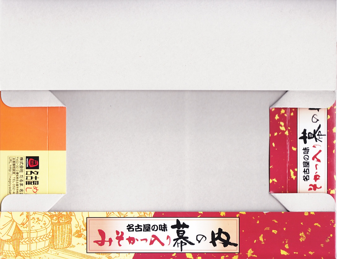 2000(平成12)年の前後に発売か、それ以前からの販売か。八丁味噌のように赤みがかる専用紙箱には、味噌の仕込み風景や宣伝文を書いている。中身はゆかりご飯と白飯の俵飯に柴漬けを載せ、みそかつ2枚、焼売、きしめんサラダ、エビフライと肉団子、タケノコなどの煮物とかまぼこと玉子焼、サワラ焼と蓮根枝豆揚、はじかみとさくらんぼを詰めるもの。名古屋や味噌の味を詰めた、幕の内タイプの駅弁。
