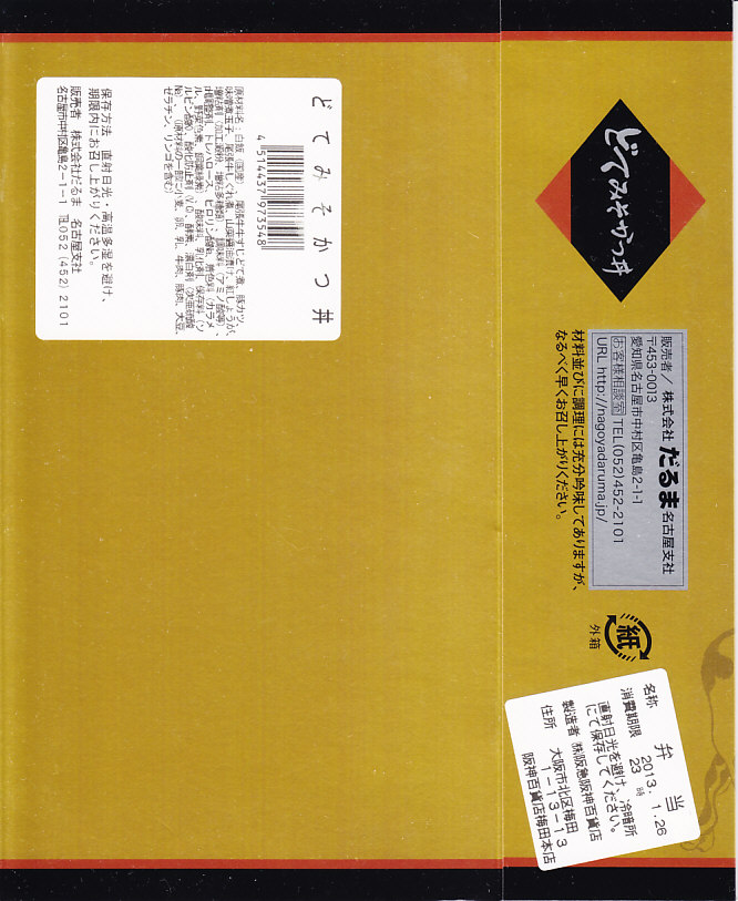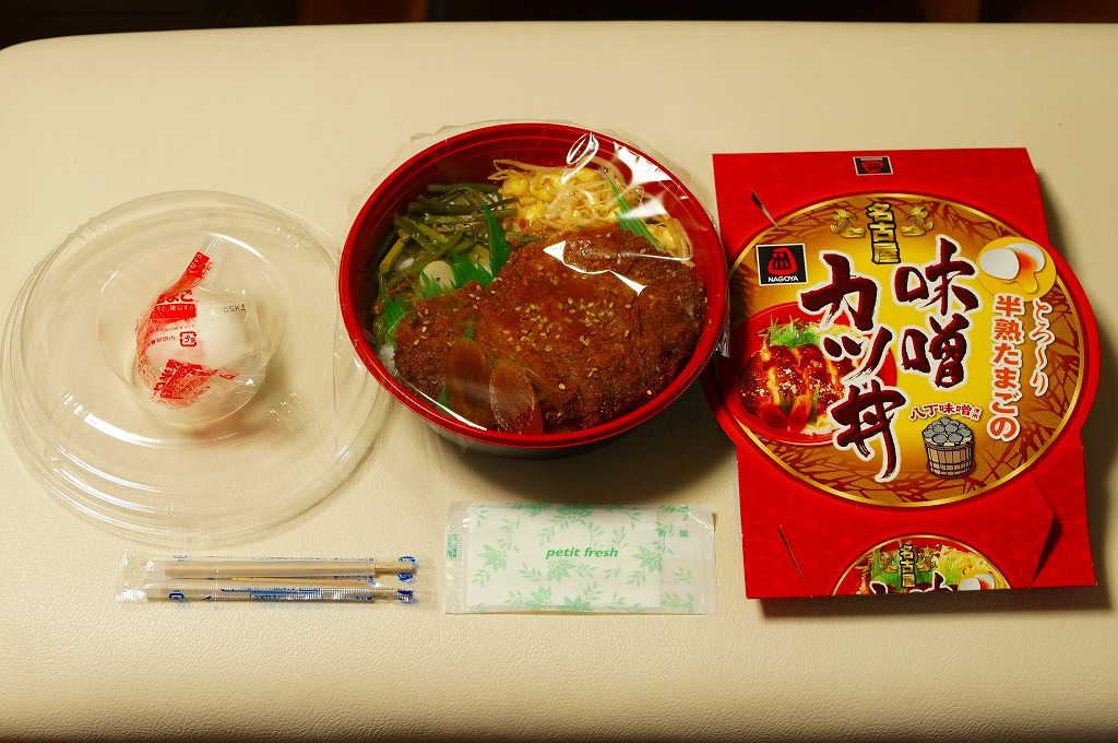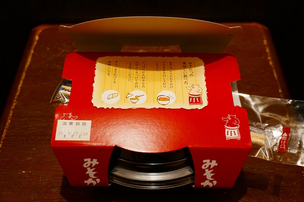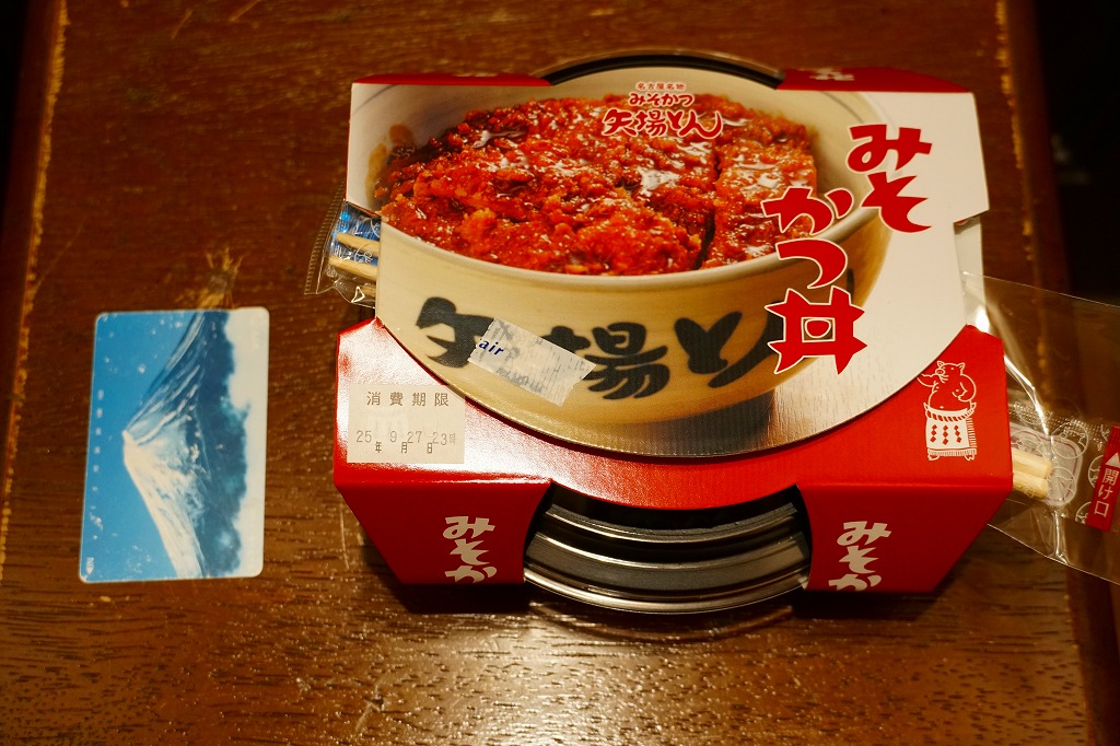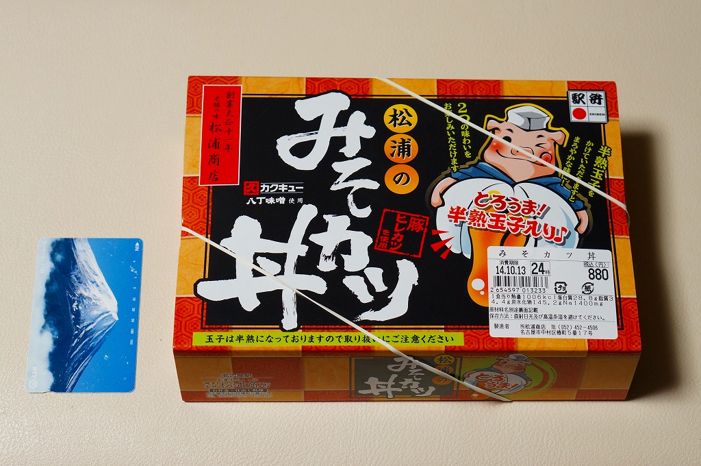 食べる際にこれをカツの上に割ることを推奨するが、駅弁を置く平坦地と卵を割る角さえ確保できれば、うまく卵がこぼれない程度の窪みが確保されているから、成功率は高いと思う。これで味噌ダレの味の角が丸まり、カツとタレのまろやかな風味が口に広がるから、赤味噌嫌いでも大丈夫かもしれない。これが名古屋の新名物「みそ丼」。2009年までに「だるまのみそかつヒレ重」と交代。