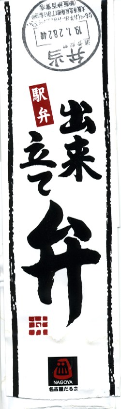 催事屋製の「駅弁の達人」マークが付いているとおり、駅弁催事向けの商品だと思うし、実際にそういう光景を何度も見たが、こうやって駅でも売られ、駅での実演販売も行った。名古屋くらい多種多様の駅弁が入り乱れているのならば、こういう駅弁らしくない変わり者がいてもよい。駅弁ファン以外の層に受けている人気駅弁。2009年頃までの販売か。