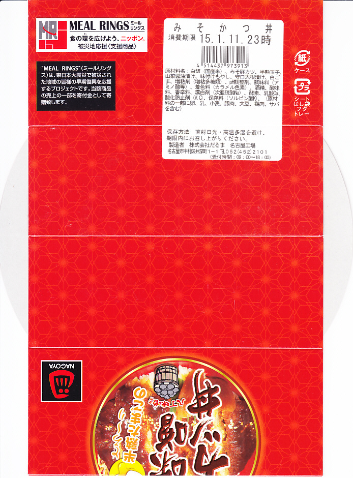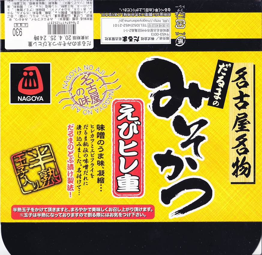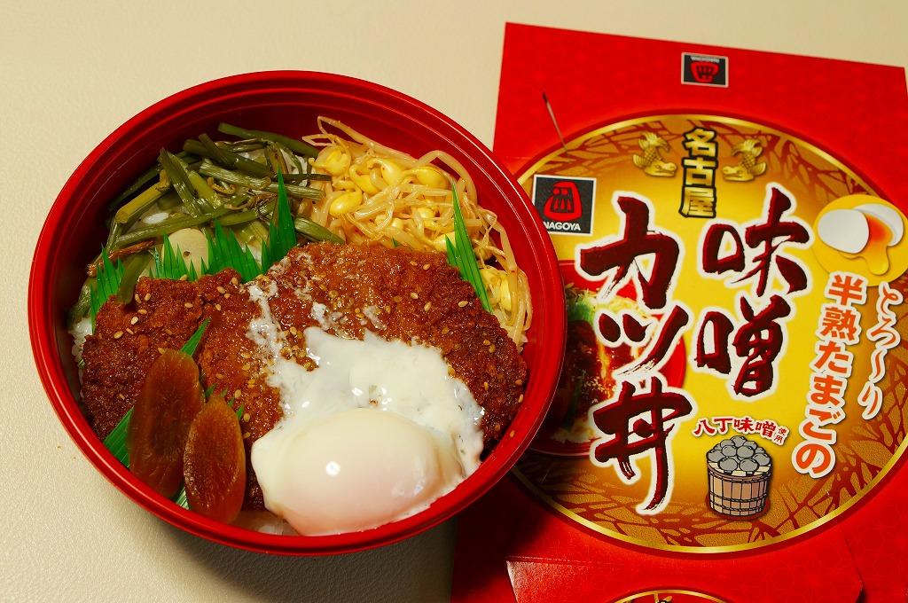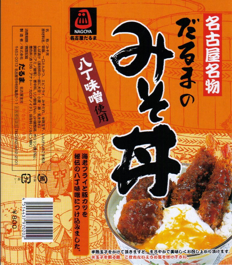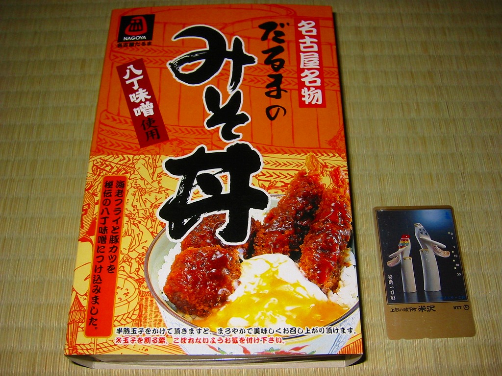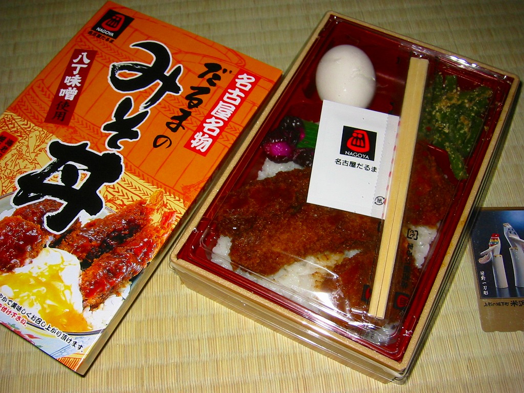 食べる際にこれをカツの上に割ることを推奨するが、駅弁を置く平坦地と卵を割る角さえ確保できれば、うまく卵がこぼれない程度の窪みが確保されているから、成功率は高いと思う。これで味噌ダレの味の角が丸まり、カツとタレのまろやかな風味が口に広がるから、赤味噌嫌いでも大丈夫かもしれない。これが名古屋の新名物「みそ丼」。2009年までに「だるまのみそかつえびヒレ重」と交代。