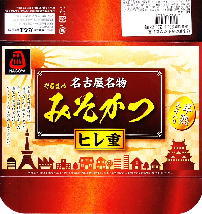 2009(平成21)年までに、従前の名古屋駅弁「だるまのヒレカツみそ丼」をリニューアル。白飯の上に透明なフィルムを敷き、いくつもの味噌カツを置き、はりはり漬、半熟卵、インゲンのごま和え、辛子を添える内容は従前と同じで、「丼」を「重」に読み替えた。シンプルな内容と濃厚な味付け、それを和らげる半熟卵が特徴で、これで20年売り続けたのならば人気で定番の駅弁と呼べそう。価格は2009年時点で880円、2015年時点で1,000円。不思議なことに、この駅弁だけ資料により異なる価格が現れる。
