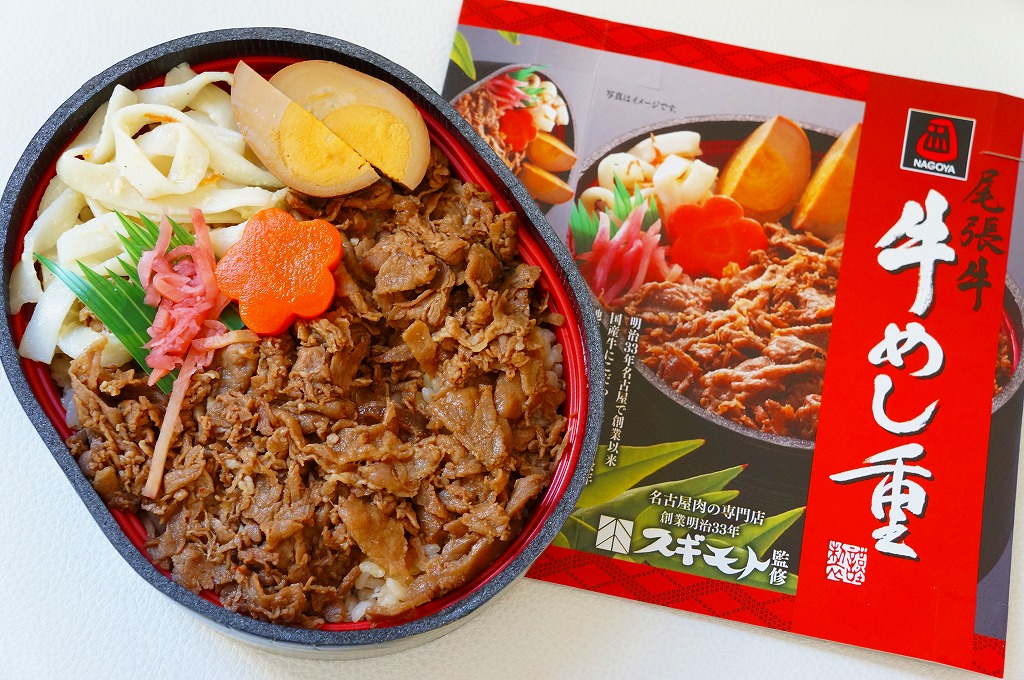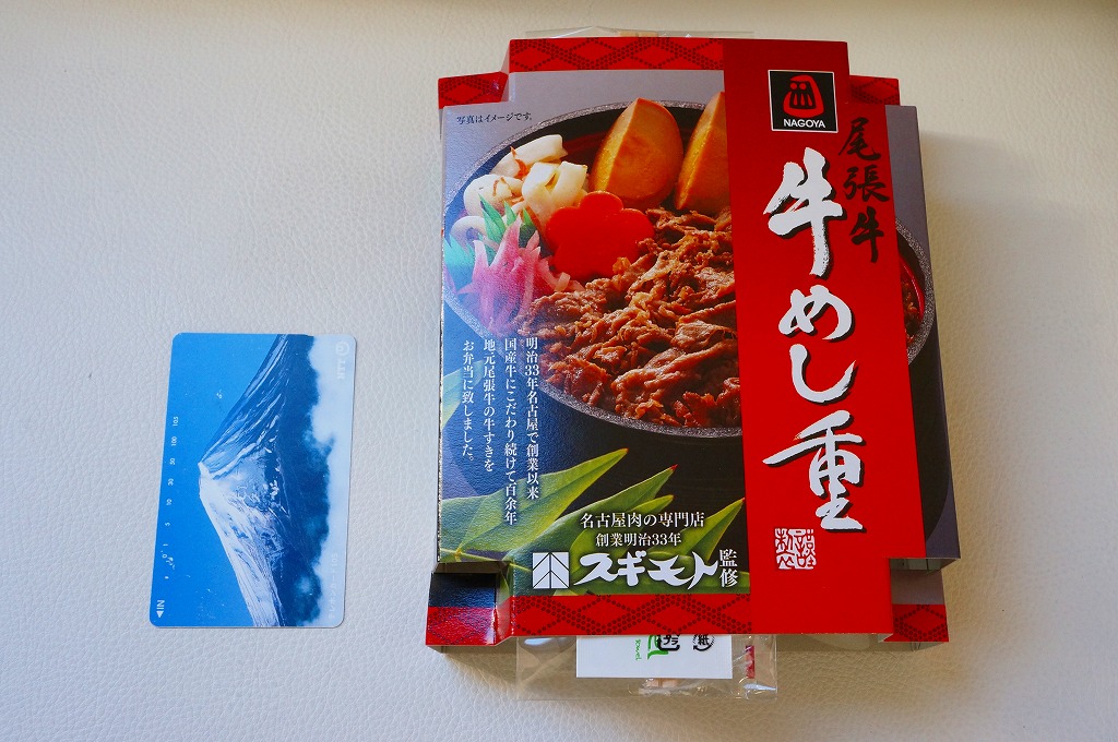 2013(平成25)年の秋から、主に東急ストアの駅弁大会で売られる、駅で売らない疑義駅弁。杉本食肉産業の「尾張牛」を使う牛丼。白御飯を牛しぐれ煮で覆い、煮玉子、ニンジン、紅生姜、きしめんサラダを添える。牛丼の部分は普通の味で、きしめんに名古屋を感じた。価格は2014年の購入時で880円、2017年時点で910円。どうもなぜか初秋に限り東京で売られる模様。2018〜2019年の駅弁大会シーズン限りで終売か。2020年時点で中部国際空港の空弁になっている模様。