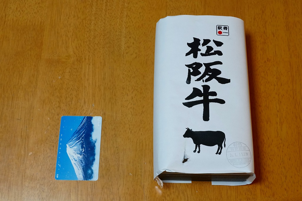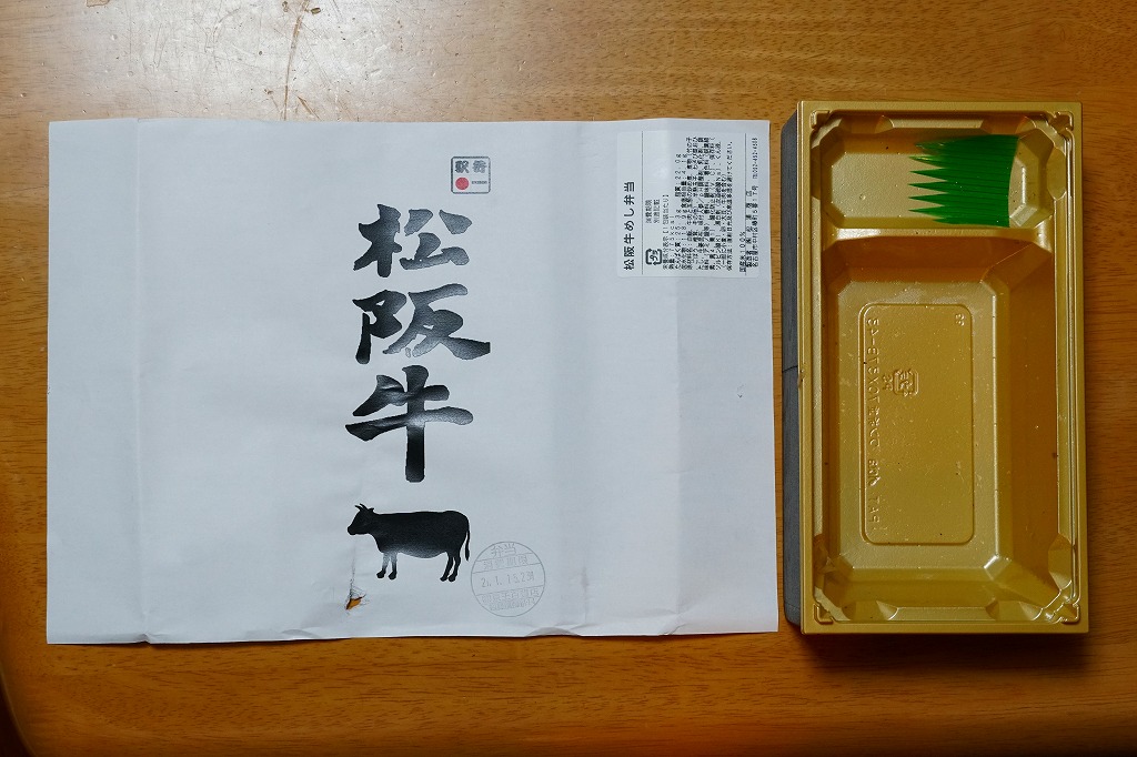 2018(平成30)年の発売か。窓開きスリーブに収めた小柄なプラ容器に、白飯+牛肉+玉子焼+わさび菜。松阪牛とする牛肉が、タレ焼きと牛肉煮の二色で御飯を覆う。薄いのに脂が豊かでも、最高級ブランド牛を名乗るほどの味でもないような、構成を含めて普通の牛肉駅弁という感じ。価格は2018年の発売時や2019年の購入時で1,350円、2022年時点で1,420円、2023年時点で1,580円。