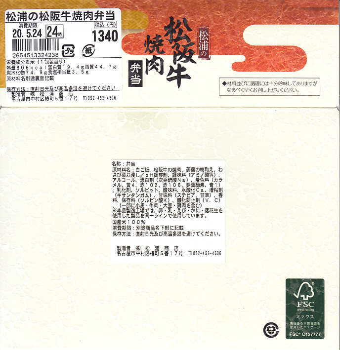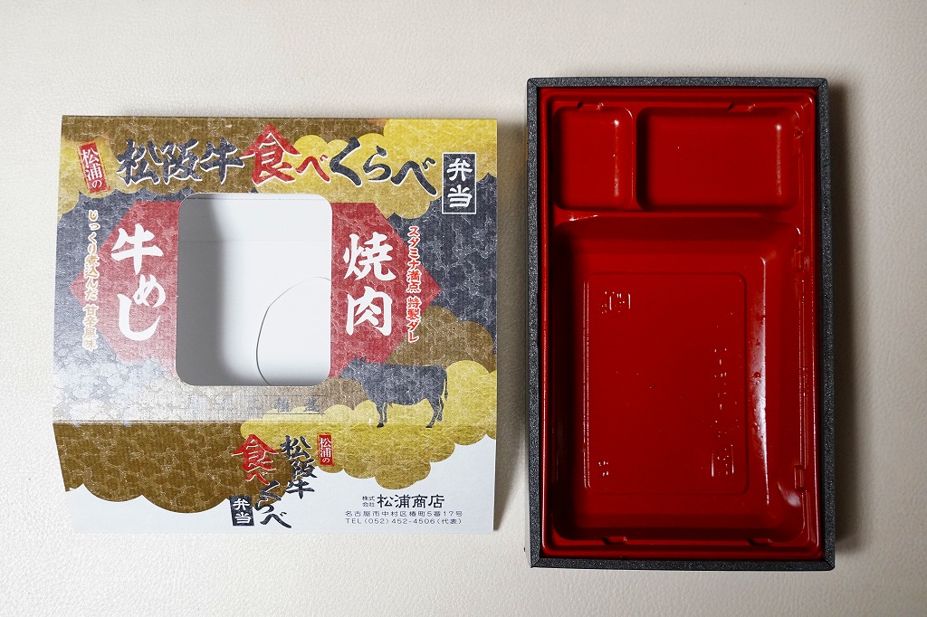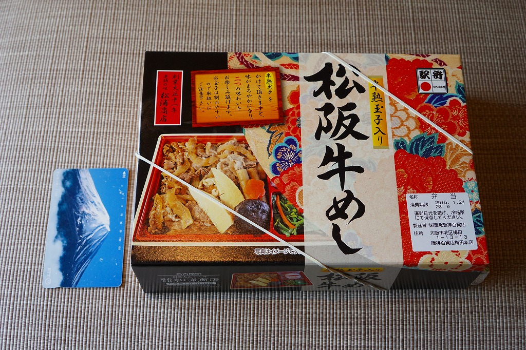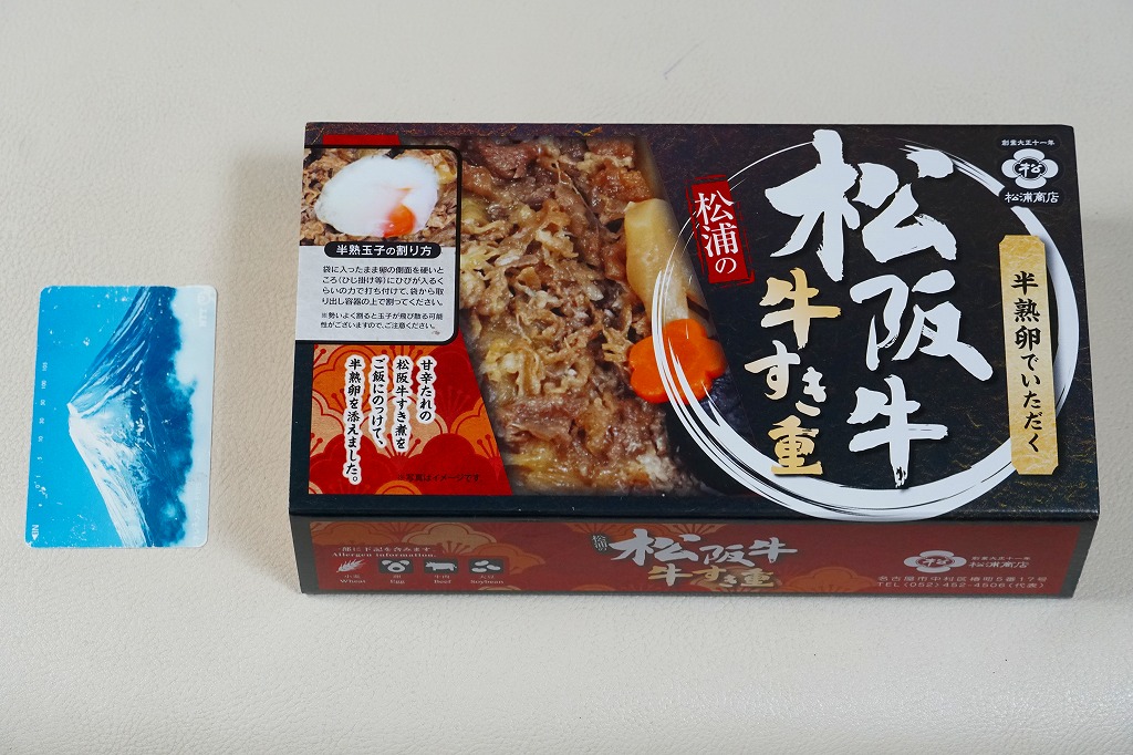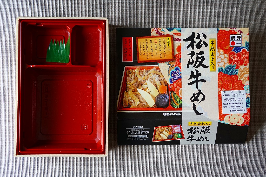 2012(平成24)年の秋までに発売。白御飯を牛肉煮で薄く覆い、タケノコとシイタケとゴボウとニンジンの煮物で彩り、玉子焼、かまぼこ、生姜昆布、わさび菜おひたしを添える。本来は玉子焼でなく半熟卵が入るようで、駅弁大会への輸送対応でこうなったのだろう。そんな輸送販売の影響か、少量の牛肉の脂が白く固くなり飯に浸み、ブランド牛の味がどこかに行ってしまっていた。なぜ名古屋駅で松阪牛なのかという疑問を感じさせながら、JR名古屋駅と近鉄名古屋駅での販売が続く。価格は2012年の発売時や2015年の購入時で1,100円、2016年時点で1,200円、2018年時点で1,250円、2019年8月から1,280円、2021年時点で1,340円、2022年時点で1,390円、2023年時点で1,480円。2024年秋頃までの販売か。