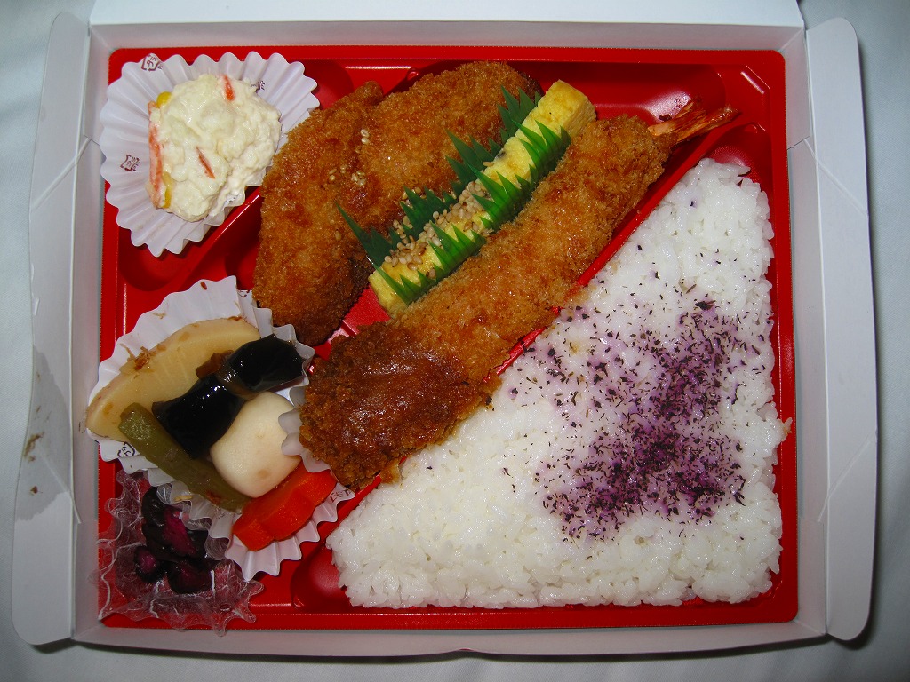 この年この月の京王百貨店の駅弁大会で実演販売したばかりの弁当が、早くもリニューアルか。下記「大えびふらい弁当」に比べて、中身が丼タイプから弁当タイプに変わり、えびふらい1本がみそカツに変わり、玉子焼にタケノコやサトイモなどの煮物やポテトサラダといった付合せが入り、価格が220円も下がった。現地ではどちらがちゃんと販売されているのだろうか。いずれもまだ、駅弁催事以外での目撃報告を探せていない。価格は2011年の購入時で880円、2014年時点で983円。現在はJR名古屋駅でなく、中部国際空港や近鉄名古屋駅で売られている模様。