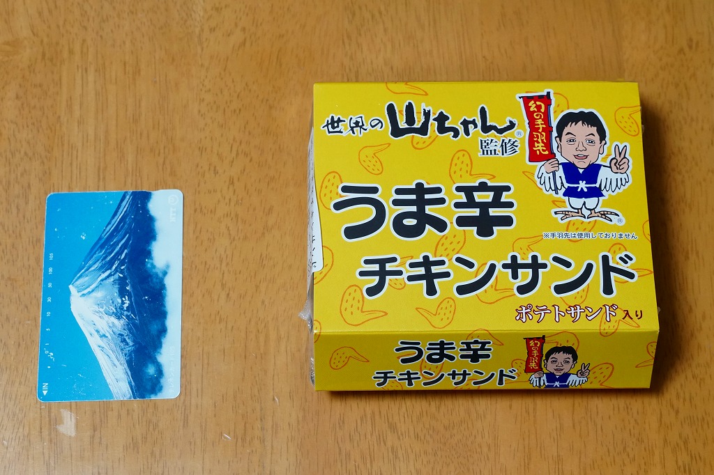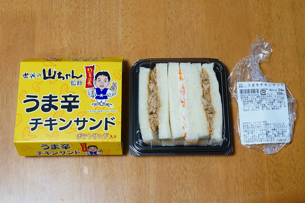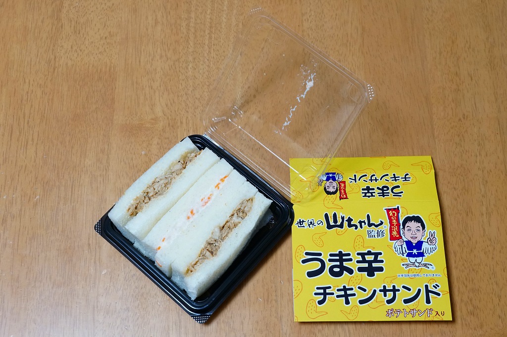 2019(令和元)年12月19日に名古屋駅で発売。調製元と、名古屋で創業し手羽先唐揚げが人気の居酒屋チェーン店「世界の山ちゃん」とのコラボ商品だそうな。鶏フレークの甘辛たれ和えサンドを2切れとポテトサンド1切れを、プラ容器に収めて黄色いスリーブにはめる。「手羽先は使用しておりません」の注記がある。1年間ほどの販売か。