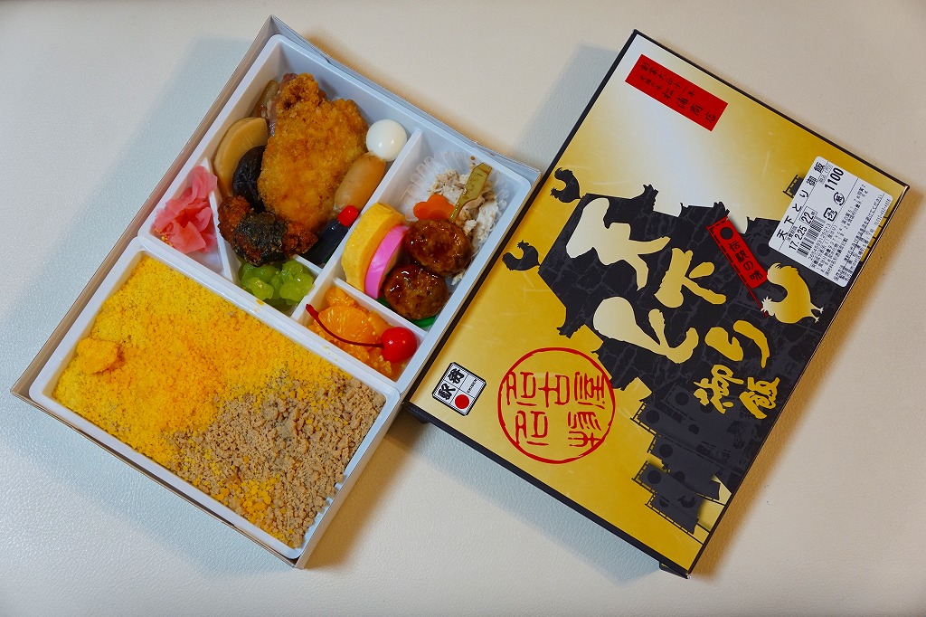 中身は鶏ガラスープで炊いた御飯に細かな鶏そぼろと卵そぼろを斜に敷いた「とり御飯」に、チキンカツ、鶏つくね、鶏照焼、鶏肉の磯辺揚、だし巻卵、うずらの卵、鶏の和え物などの鶏づくしに、かまぼこ、大根桜漬、みかん、さくらんぼ。価格は2017年時点で1,100円、2022年時点で1,150円、2023年時点で1,240円、2024年時点で1,260円、2025年時点で1,290円。