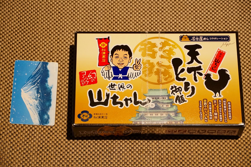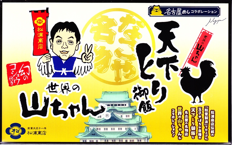 2024(令和6)年12月10日に名古屋駅などで発売。東海道新幹線の開業60周年を記念した企画だと紹介された、名古屋駅で伝統の駅弁の流れを汲む「天下とり御飯」と、名古屋から国内外にチェーン展開する食堂「世界の山ちゃん」とのコラボ商品。中身は名古屋駅弁「天下とり御飯」のチキンカツを鶏もも唐揚げに置き換え、世界の山ちゃんの看板商品「幻の手羽先」で使われる「幻のコショウ」で味付けたり袋を添付したもの。ふたでは天下とり御飯の名古屋城やニワトリと世界の山ちゃんが相対し、ふたの裏にはこの駅弁を4コママンガで紹介する「てばさ記」を掲載した。名古屋駅弁やとり御飯より世界の山ちゃんのほうがはるかに有名だと思うので、現地で催事でその知名度をもって牽引してもらう弁当に思えた。