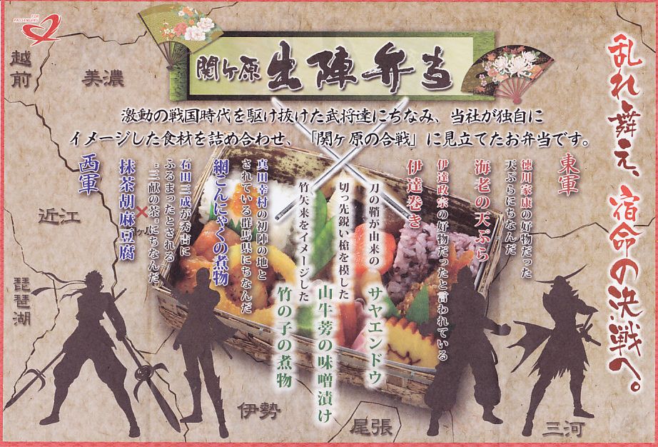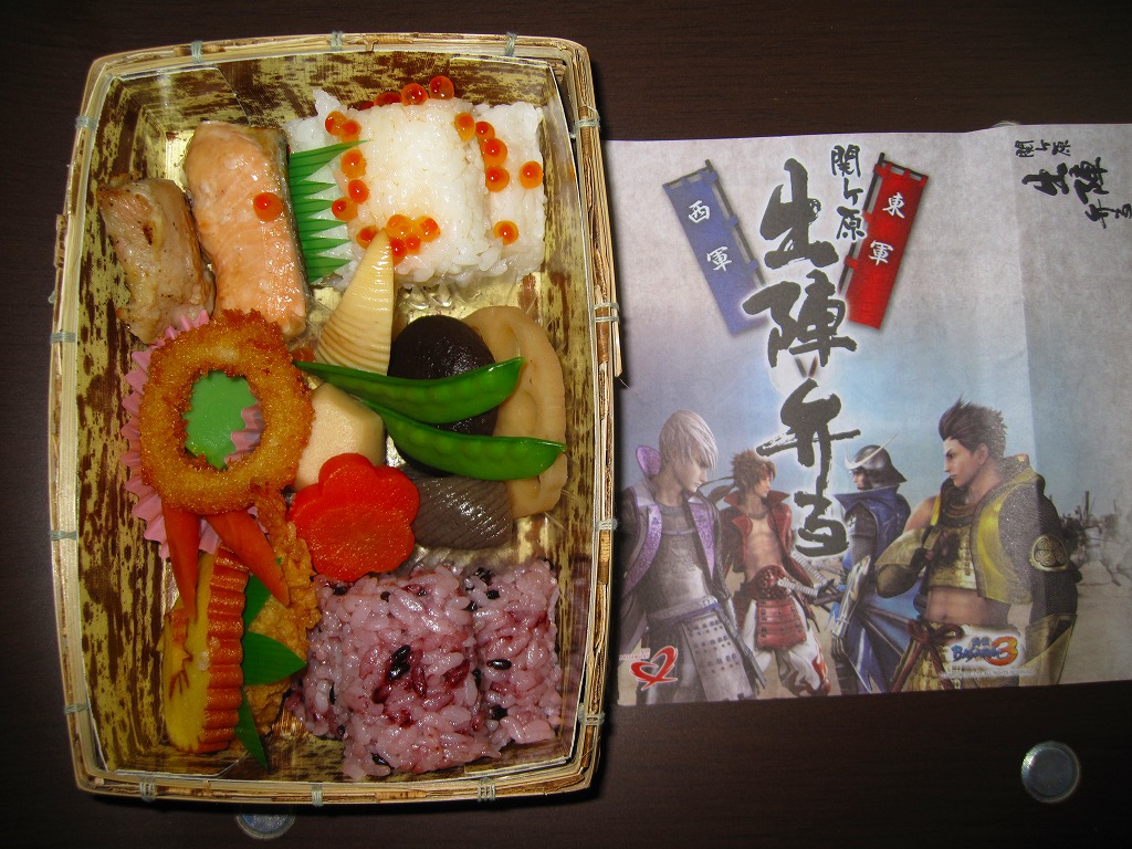 2010(平成22)年10月1日に発売。竹皮編みの長方形の容器に、カプコンのゲームソフト「戦国BASARA3」における4人の武将のイラストを表面に、写真入りのおしながきを裏面に印刷した掛紙をかける。ゲーム作品とのタイアップは特にうたわれていない。