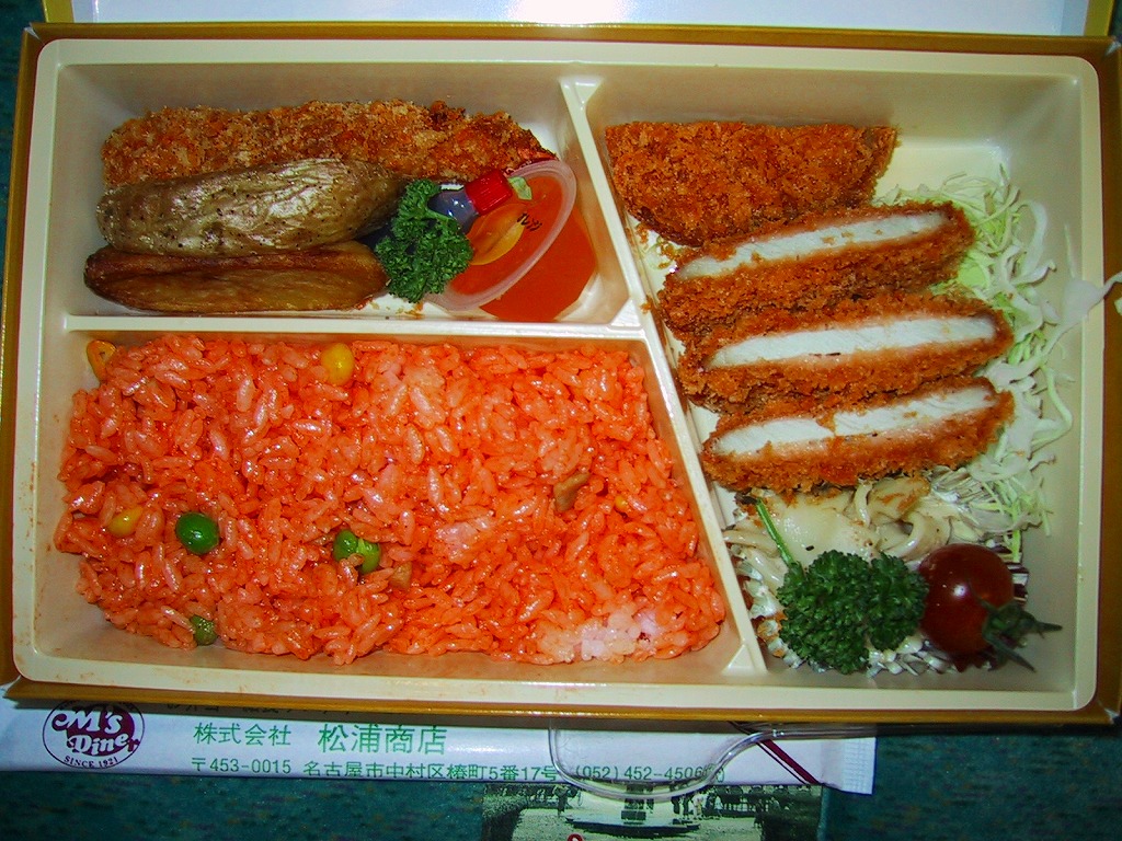 商品名は「名古屋トップスリー」とも。トレーを入れた紙箱を紙帯で留める。中身はエビフライ・名古屋コーチン入りチキンライス・味噌カツと名古屋三大名物が入り、フライドポテトやカップゼリーなども入る、非常に分かりやすい若者向けな洋風弁当。価格は2003年の購入時で880円、2014年4月の消費税率改定で900円。、2017年時点で930円。2017年頃までの販売か。