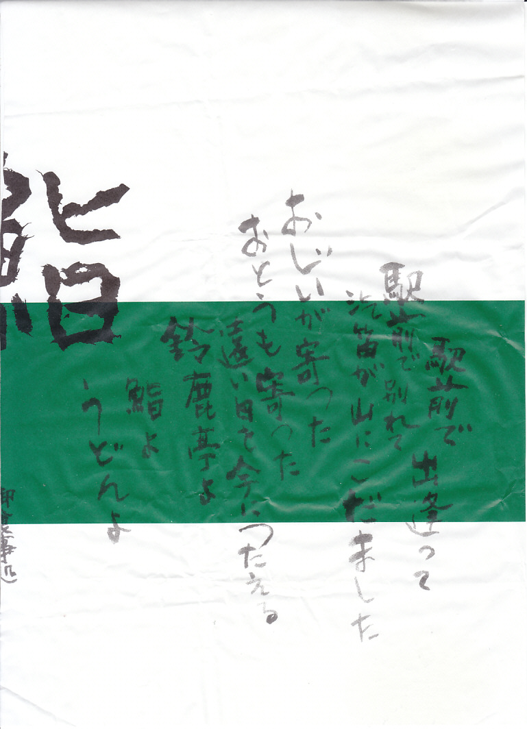 2017(平成29)年2月25日に購入した、関駅弁の包装紙。上記の2023年のものと、価格を除きすべてが変わらない。偶然にも前回と今回で包装紙の絵柄がつながり、この寿司店で使う絵柄の全体が見えた。