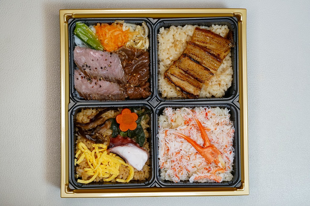2024(令和6)年1月の京王百貨店の駅弁大会で販売した企画商品。全国を6地域に分け、各地域の駅弁を4マスに詰めた駅弁を、実演で販売した。会期の前半は「北陸編」「中部編」「九州編」の3種を、後半は「北海道編」「東北・関東編」「関西・中国編」の3種を販売。会場ではもしかすると一番人気のブースになり、行列ができて毎日売り切れていた。