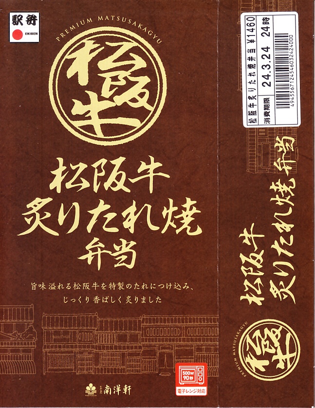 2022(令和4)年の2月までに、スーパーの駅弁催事などで発売か。長方形のプラ容器に白飯を詰め、松阪牛炙りたれ焼と商品名に書いてある牛肉で覆い、ナムルを添える。三重県松阪の牛肉で滋賀県草津の駅弁屋が弁当を作り、京都や大阪あるいは全国で販売することに違和感を覚えてはいけない、駅弁の今風な一形態。価格は2022年時点で1,340円、2023年時点で1,460円、2025年時点で1,540円。