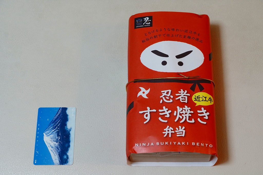 忍者と牛肉の関連はさておき、草津駅は忍者の里を名乗る甲賀へ行くJR草津線の起点で、忍者にちなむ電車「SHINOBI−TRAIN」が運行される。また「うばがもち」は戦国時代からの草津宿の名物であるため、地域性を持つ駅弁である。しかしいずれも東京の買い物客にまでの知名度はなく、加えて草津といえば滋賀県よりも群馬県の温泉地という土地柄。2週間の会期を通して、全然売れておらず、かわいそうだった。