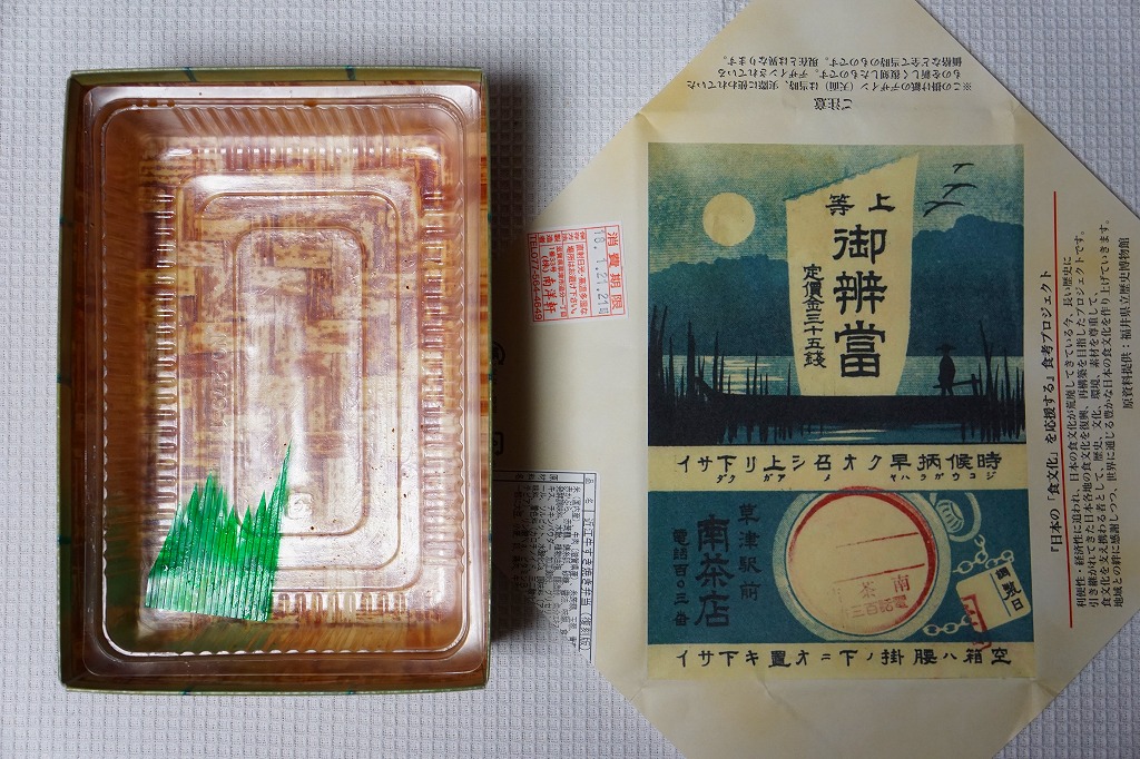 ということで、草津駅弁の歴史はほぼ、東海道本線の全通後の歴史と重なる。かつては東海道が中山道を分けた宿場町で、東海道本線が伊勢や南紀へ至る草津線を分ける駅は、駅弁があってしかるべき駅であった。1964(昭和39)年の東海道新幹線の開通、その前後の国鉄の伊勢輸送の衰退、一帯の京都のベッドタウン化で、今では駅弁があることが不思議に思える駅。駅弁大会で売られる草津駅弁のほぼすべてが、草津駅に行っても買えない弁当となる。