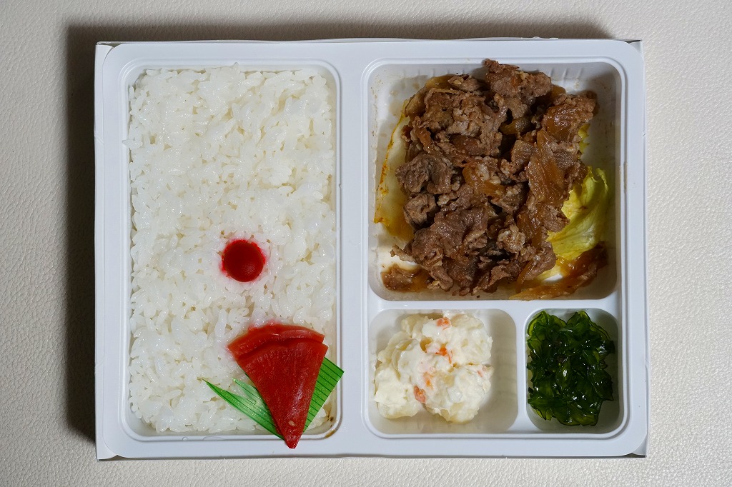 1980年代の発売か。米原付近のイラストマップを描いたボール紙の容器を使う。白いプラ製トレーに詰めた中身は、日の丸御飯に赤かぶ漬を添え、レタスを敷いて玉ねぎ入り牛肉炒めを載せ、ポテトサラダとしそわかめを添えるもの。個々の食材はおいしいと思うけれど、見た目にやや寂しい牛肉弁当。価格は2003年時点で930円、2006年10月から950円、2014年時点で1,000円、2023年時点で1,150円、2024年時点で1,200円、10月から1,280円。調製元の駅弁事業からの撤退により、2025年2月末までの販売。