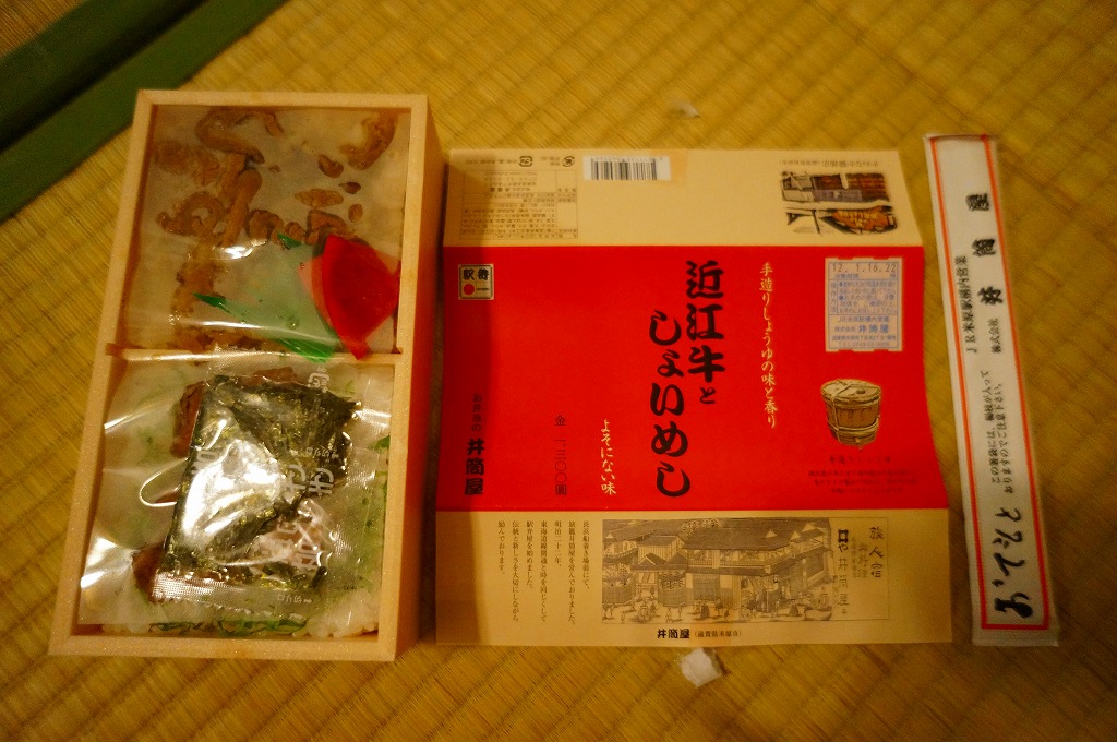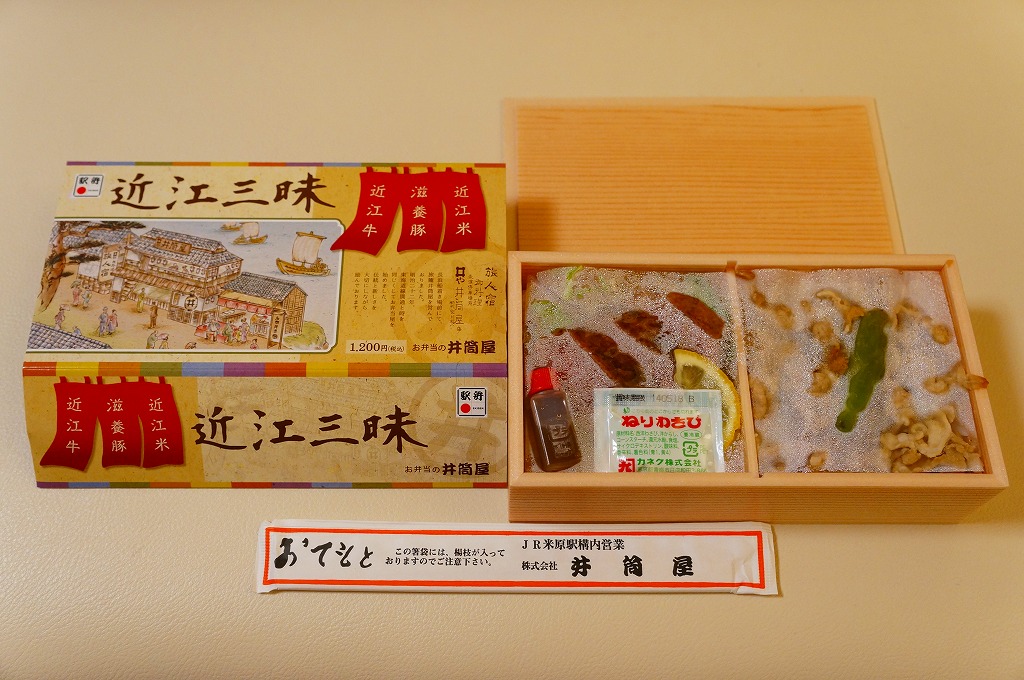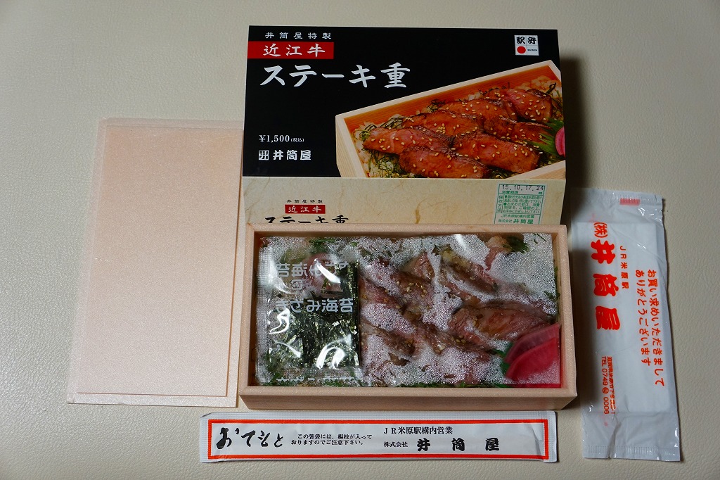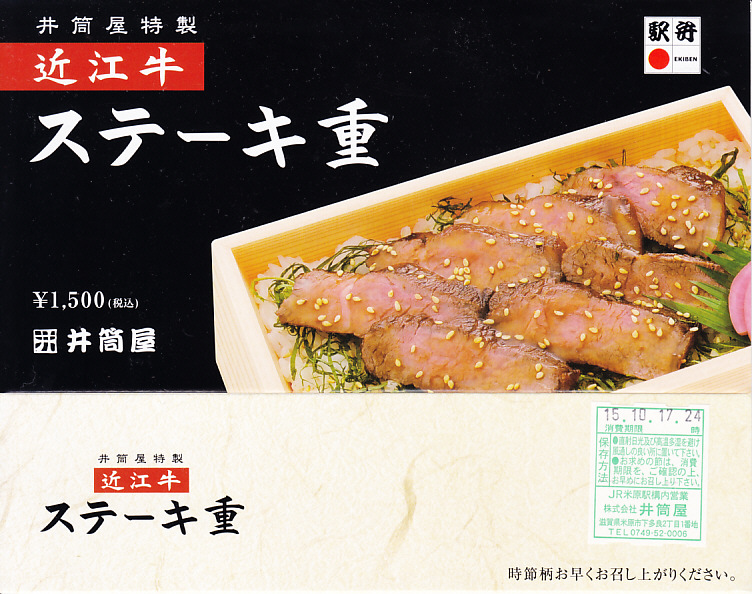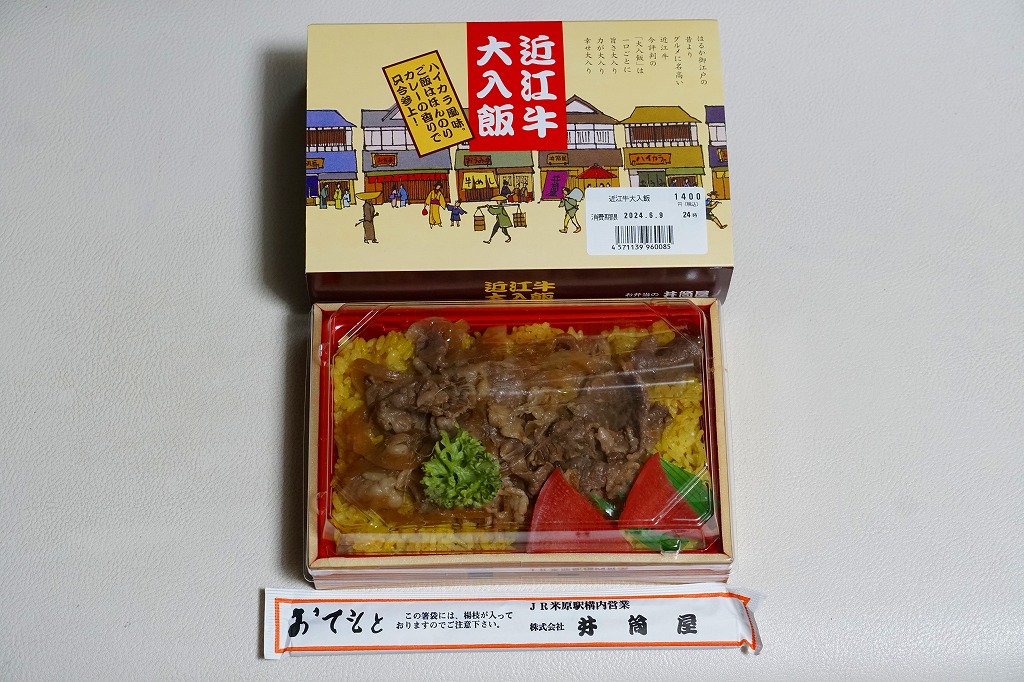 2013(平成25)年までに発売か。米原駅の牛肉駅弁の最高峰。調製元の公式サイトでは予約を推奨するが、普通の週末である訪問時には、米原駅に加えて名古屋駅でも予約なしに買えた。