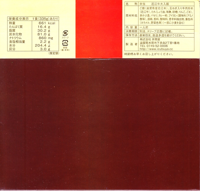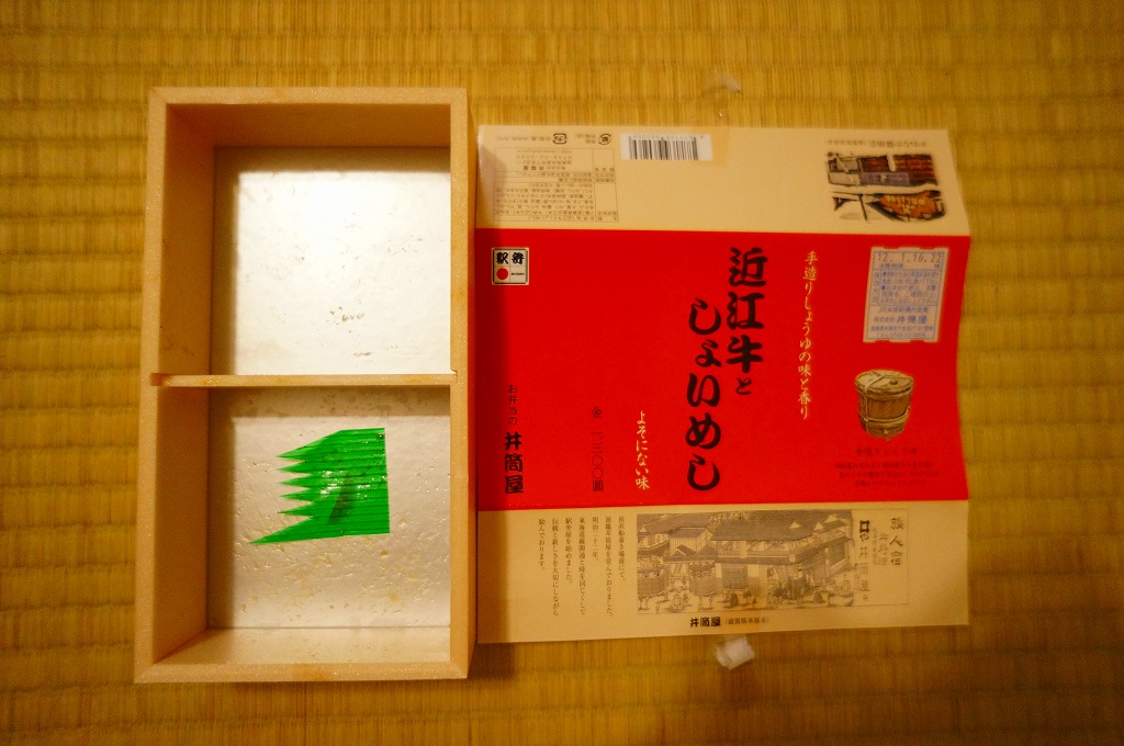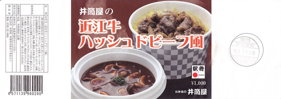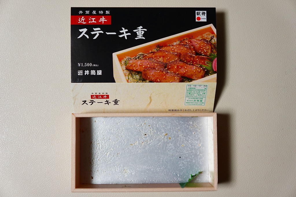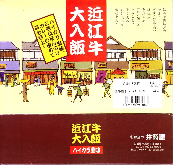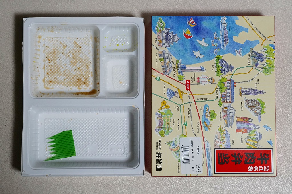 2013(平成25)年までに発売か。米原駅の牛肉駅弁の最高峰。調製元の公式サイトでは予約を推奨するが、普通の週末である訪問時には、米原駅に加えて名古屋駅でも予約なしに買えた。
