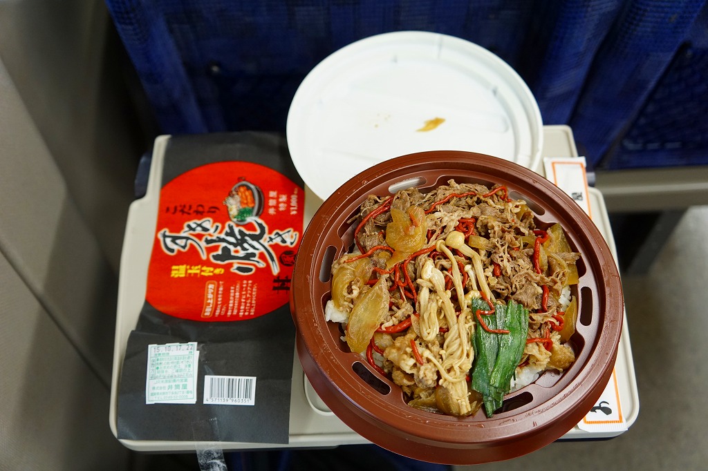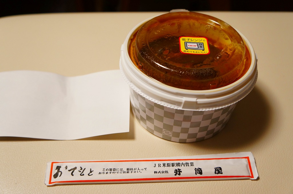 肉の分量はそれほどでもなく、肉だけの食感は筋っぽく、具で増量したように見える。しかしまとめて食べると柔らかく、熱が届かず卵が置けないほど具をたっぷり盛ってがっつりガツガツいける感じもまた増量。牛肉の駅弁は米原にも全国でもいくらでもあるので、こんな個性があってもよい。ほどなく終売か。