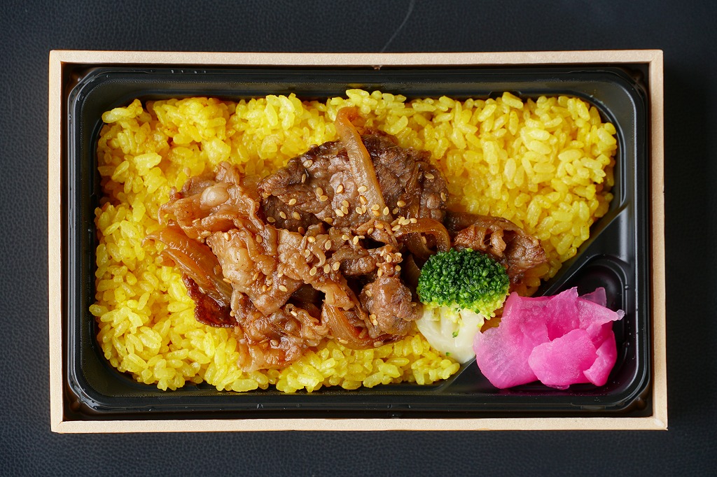 デパ地下弁当かスーパーの惣菜向けのプラ容器に、商品名を記した紙帯を巻く。中身はカレー風味の黄色い御飯の上に、牛カルビ焼肉を置き、白ごまを振り、ブロッコリーと大根桜漬を添えるもの。この内容と風味は、入れ替わりに消えたかつての米原駅弁「近江牛大入飯」を思わせる。はたしてこれが、米原駅弁と呼ばれる存在になるのかどうか。