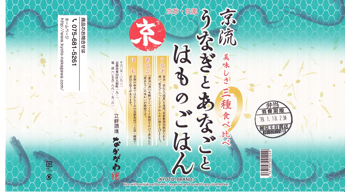 2019(平成31)年1月の京王百貨店の駅弁大会で実演販売。容器の半分が西日本風のアナゴ丼で、もう半分がウナギ2切れとハモ1切れの丼。他の具は柴漬けしかない、シンプルな内容。味もシンプルにうまくとも、今までの京らしさはないような。催事場では人気がなく、なぜここにこういうものを出したのかについて語ればよいのにと思った。京都駅で販売したかは分からない。