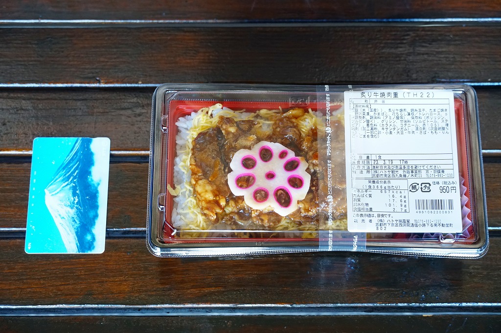 2021(令和3)年までに京都鉄道博物館で発売か。白飯を錦糸卵で覆い、タレたっぷりの牛焼肉で覆い、花れんこん、かまぼこ、玉子焼、野沢菜漬を添える。掛紙その他包装も特徴も何もない、駅弁らしさも京都らしさもない、まるでスーパーの惣菜弁当。しかし館内で弁当が買えるのはここだけで、ここも食堂も供給不足で行列ができる状況なので、これもよく売れていたようにみえる。施設の性格上、入館者にはお弁当を作って持ち込む家族連れも少なくない。営業事業者の変更により2024年8月限りで終売、9月からは神戸の駅弁が売られる。