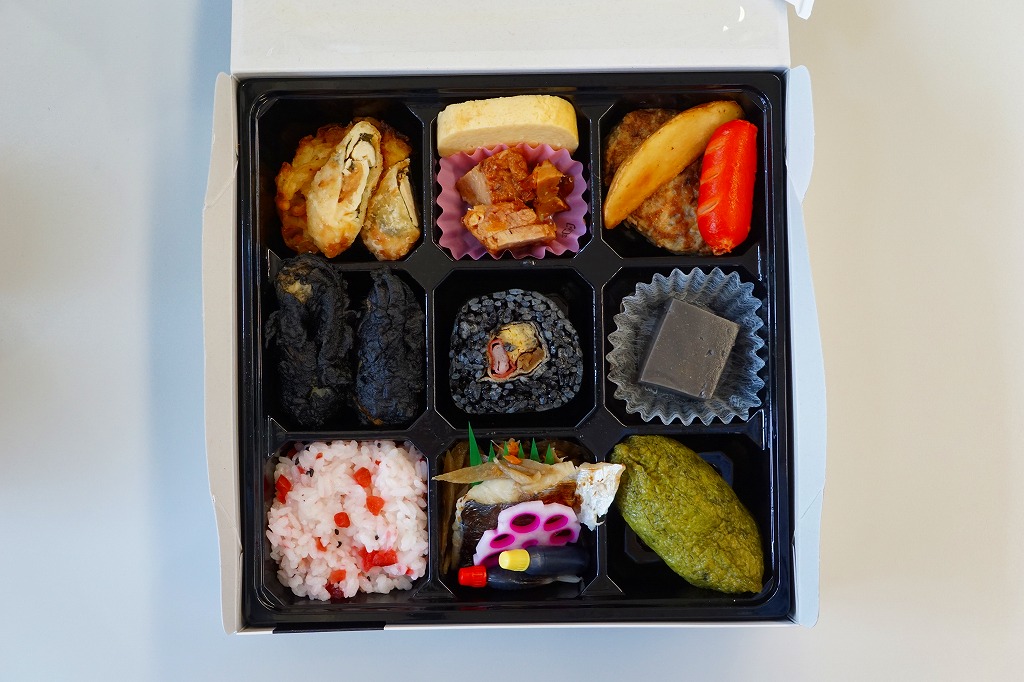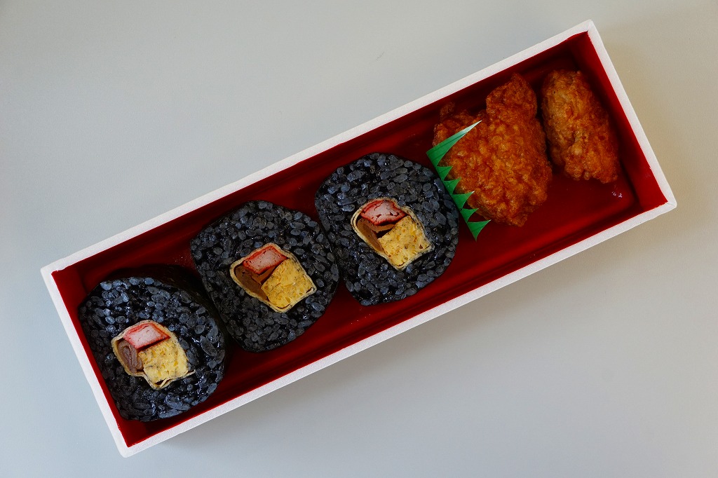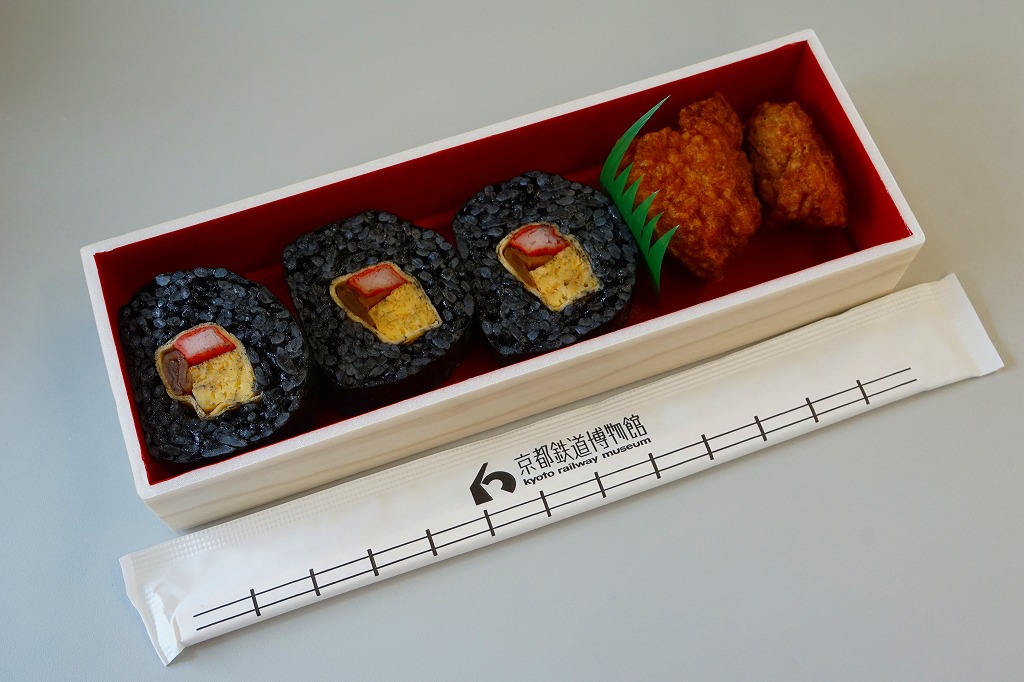 2016(平成28)年7月21日の京都鉄道博物館の食堂車で発売。掛紙や専用容器のようなものはとくになく、SL弁当に入っていた真っ黒な太巻きを3個と、鶏唐揚を2個詰めただけ。2017(平成29)年までに終売か。