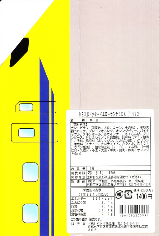 こどもの入館者も多い施設で、新幹線電車型容器の弁当を売ることは的を射ているし、ライバルのリニア・鉄道館や埼玉の鉄道博物館でも同じことをしているし、この車両は館内からもまれに見ることができる。新大阪駅や東京駅などで買えるドクターイエローの駅弁とは調製元が異なるほか、他社の駅弁では必ず大きく明記してきたJR東海のT4編成がJR西日本のT5編成かの表記を、ここではスリーブと容器の窓部に小さくT5と書いただけで済ませた。営業事業者の変更により2024年8月限りで終売、9月からは神戸の駅弁が売られる。