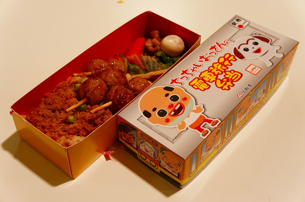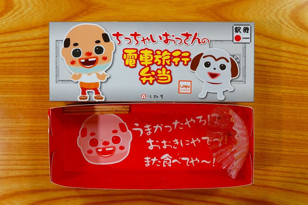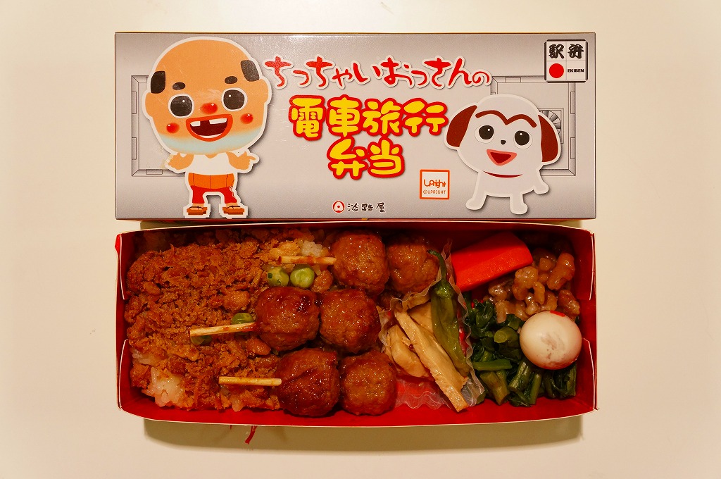 2014(平成26)年1月の阪神百貨店の駅弁大会で、尼崎駅の駅弁として販売。実際に尼崎駅で売られたかは疑義がある。東京都新宿のキャラクター会社が持つコンテンツ「ちっちゃいおっさん」を名乗り、その絵柄がパッケージの表や裏や横や中に使われる。中身は醤油飯を鶏つくね串と鶏そぼろで覆い、焼き鳥、小松菜、クルミ、ししとう、ニンジン、うずらの卵を添える。小腹あるいは酒の友に良さそうな、味の濃い軽食の味は悪くない。4月頃まで新大阪駅か大阪駅で売られた模様。