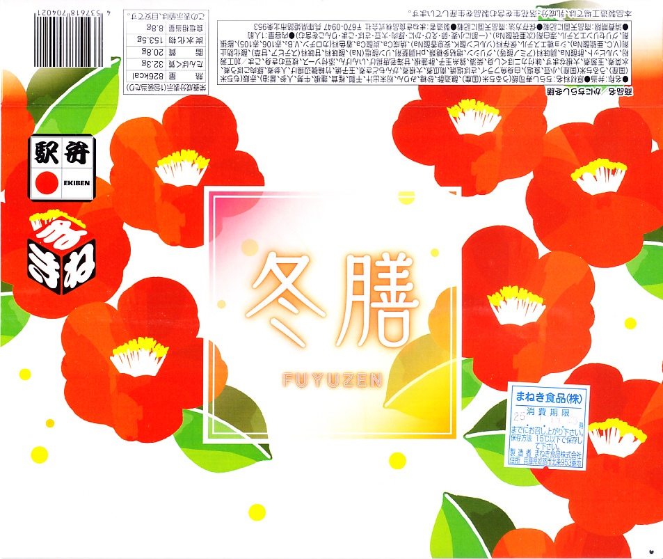 2014(平成26)年までには「かにめし冬膳」の名前で発売か。2017年には「かにちらし冬膳」となり、2023年には単に「冬膳」となった。冬季あるいは12月から2月まで販売する、姫路駅の冬のお弁当。仕出し弁当向け弁当箱の構造を持つ専用の紙箱に詰めた黒いプラ製トレーに、ちらしずしと俵型の赤飯、白身魚フライ、さば塩焼、甘海老の唐揚げ、ちくわ磯辺揚げ、玉子焼、かぼちゃやだいこんなどの煮物、豚肉ごぼう煮、大根なます、柴漬けを詰める。季節感はないと思う、仕出し弁当タイプあるいは幕の内弁当タイプの駅弁。3月から5月までは「春膳」、6月から8月までは「夏膳」、9月から11月までは「秋膳」を販売。