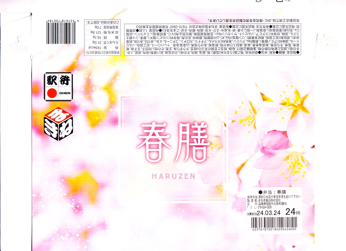 2014(平成26)年までにはこの名で発売か。春季あるいは3月から5月まで販売する、姫路駅の春のお弁当。仕出し弁当向け弁当箱の構造を持つ専用の紙箱に詰めた黒いプラ製トレーに、たけのこ御飯、焼サバ、玉子焼、鶏八幡巻、れんこんの磯辺揚げ、枝豆と豆腐の天ぷら、あさり佃煮、有頭海老、しいたけ、高野豆腐、肉団子、そらまめ、酢の物、柴漬け、桜餅。春らしい食材を取り入れた、仕出し弁当タイプあるいは幕の内弁当タイプの駅弁。6月から8月までは「夏膳」、9月から11月までは「秋膳」、12月から2月までは「冬膳」を販売。価格は2014年時点で1,000円、2022年時点で1,080円、2024年時点で1,100円、2025年時点で1,180円。