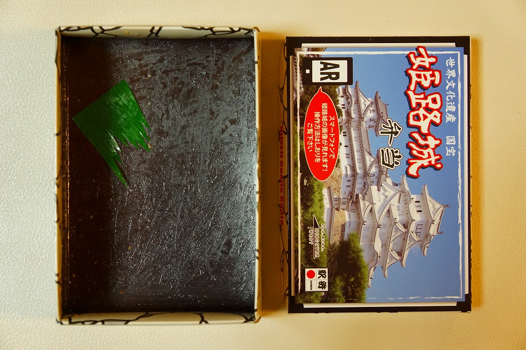 食べて普通の駅弁も、コンセプトが見えない感じ。もしかすると最大の売りが、添付のしおりのQRコードで、姫路城のAR画像が見られることかもしれない。要スマホ、要「無料アプリ」のため、怪しい感じがして試していない。この姿では2018年の秋頃まで売られた模様。その頃までに「姫路城弁当」を名乗る姫路駅弁は、春と秋の季節の幕の内になっている。
