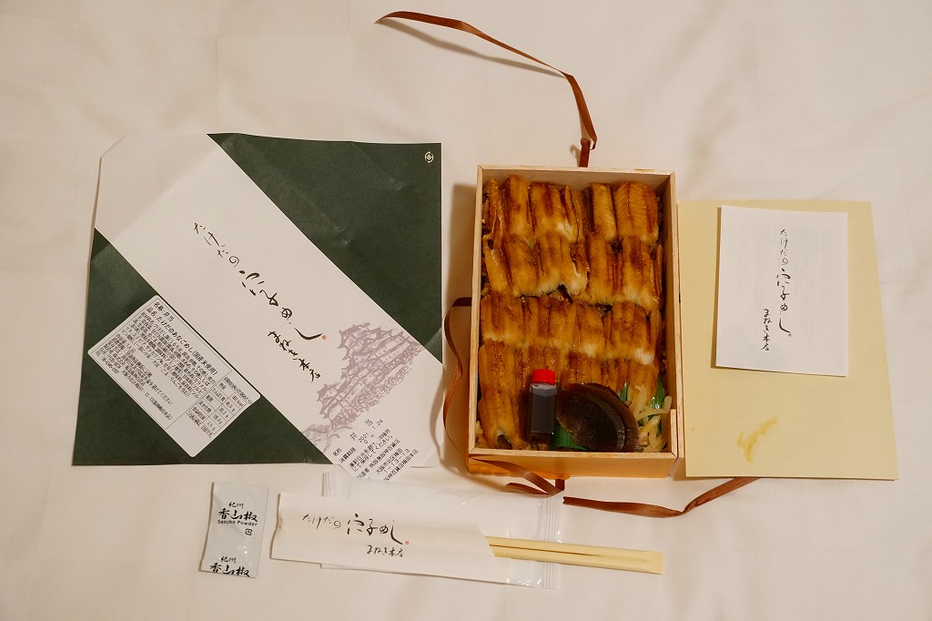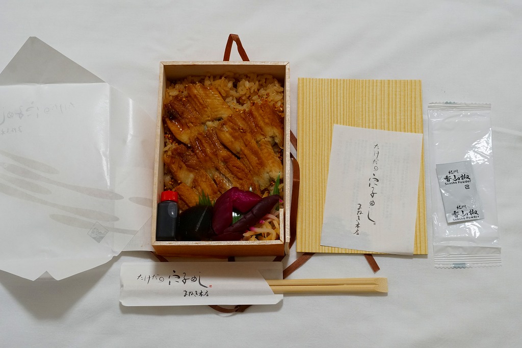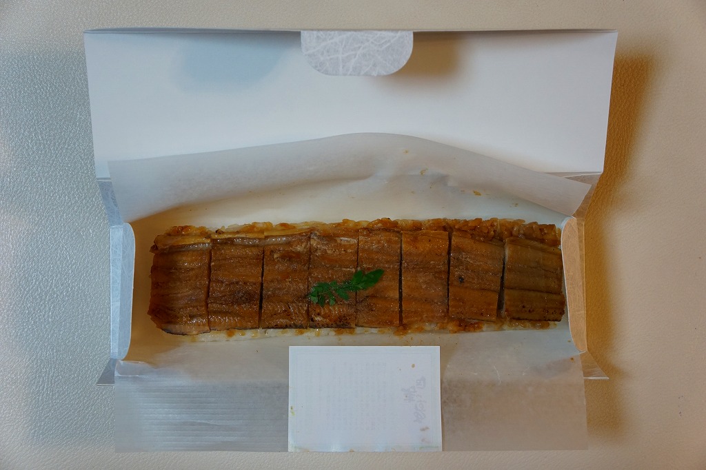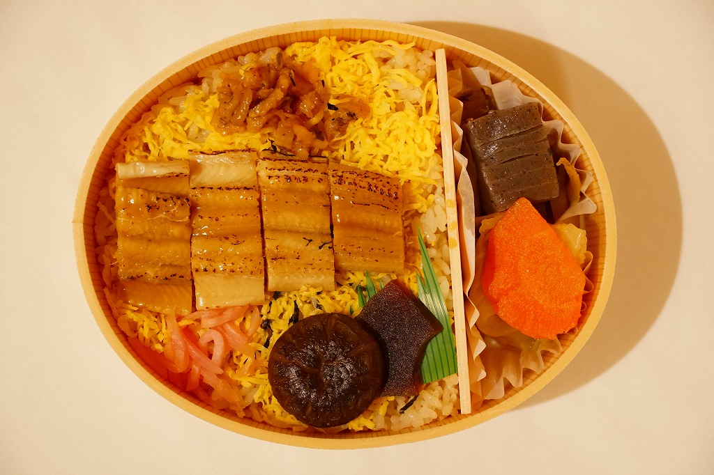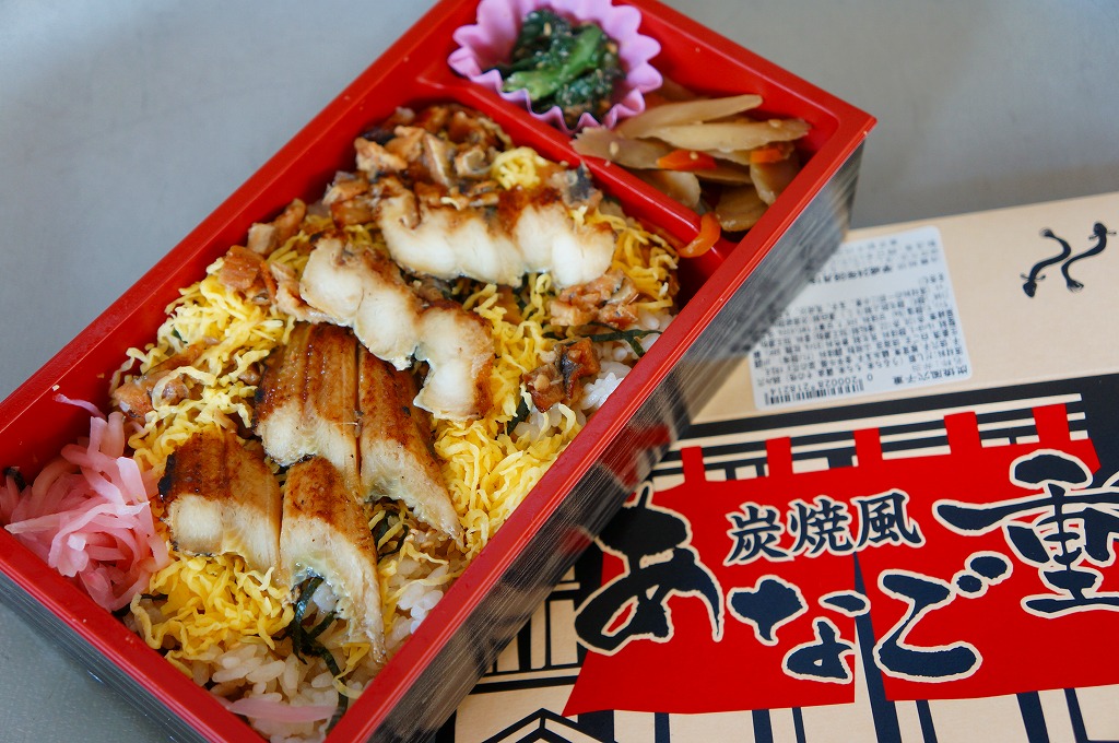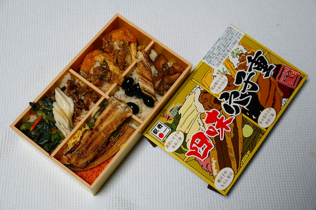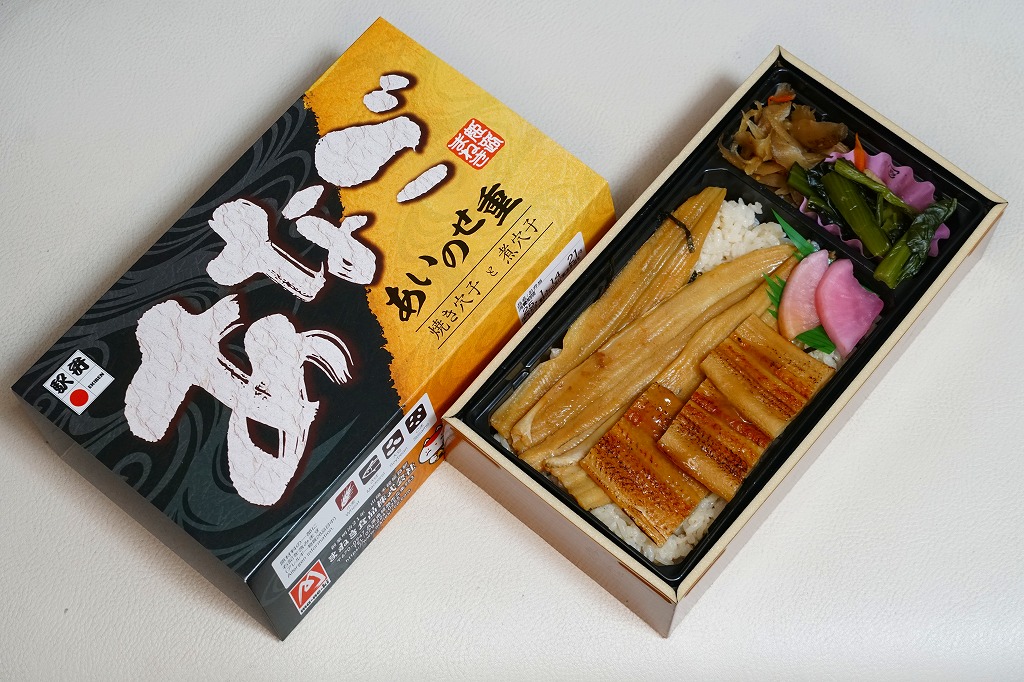 2014(平成26)年1月の京王百貨店の駅弁大会と阪神百貨店の駅弁大会でデビューか。上げ底を加えて高さのある容器に、だし飯を詰め、煮アナゴを載せ、その上にまただし飯を詰め、焼アナゴと山菜と漬物を載せる。アナゴの量は面積で、上層で2/3、中層で1/3程度と多くはないが、アナゴを刻んだり焼いたり煮たりしていて、それらの味の変化を楽しめた。価格は2014年の購入時で1,200円、2017年時点で1,240円。2019年までに終売か。