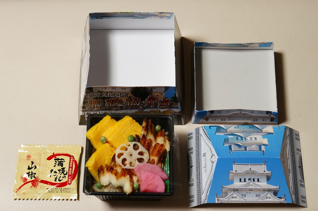 2015(平成27)年1月8日に京王百貨店の駅弁大会での実演販売でデビュー。現地でも同日に発売。四方からの城の写真を印刷した厚紙を、組み立てて重ねることで姫路城を模す。中身は姫路駅名物「えきそば」で使うだし汁で炊いた御飯に、玉子焼、アナゴ焼、大根漬を折り重ねる。