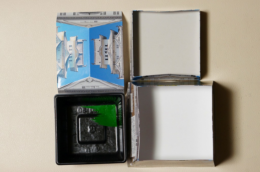 1976(昭和51)年7月13日14時の調製と思われる、昔の姫路駅弁の掛紙。写真はとても小さく見える姫路城。上記のとおり、この絵柄と当時の中身で2005年に復刻販売された。