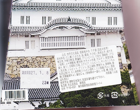 姫路城の大天守は、2009(平成21)年6月からこの年の2015(平成27)年の3月まで、28億円をかけて「平成の大修理」を実施。前回の1964(昭和39)年完了の「昭和の大修理」から半世紀ぶり。作業のため大天守をまるごと覆った鉄骨の素屋根が2014年6月までに解体されると、異様に白い大天守が出現、城の別名の「白鷺(しらさぎ)城」ならぬ「白すぎ城」だと話題になった。数年もすればカビが生え、元の姿に戻るという。この駅弁はパッケージで、その真っ白な姿を記録した。