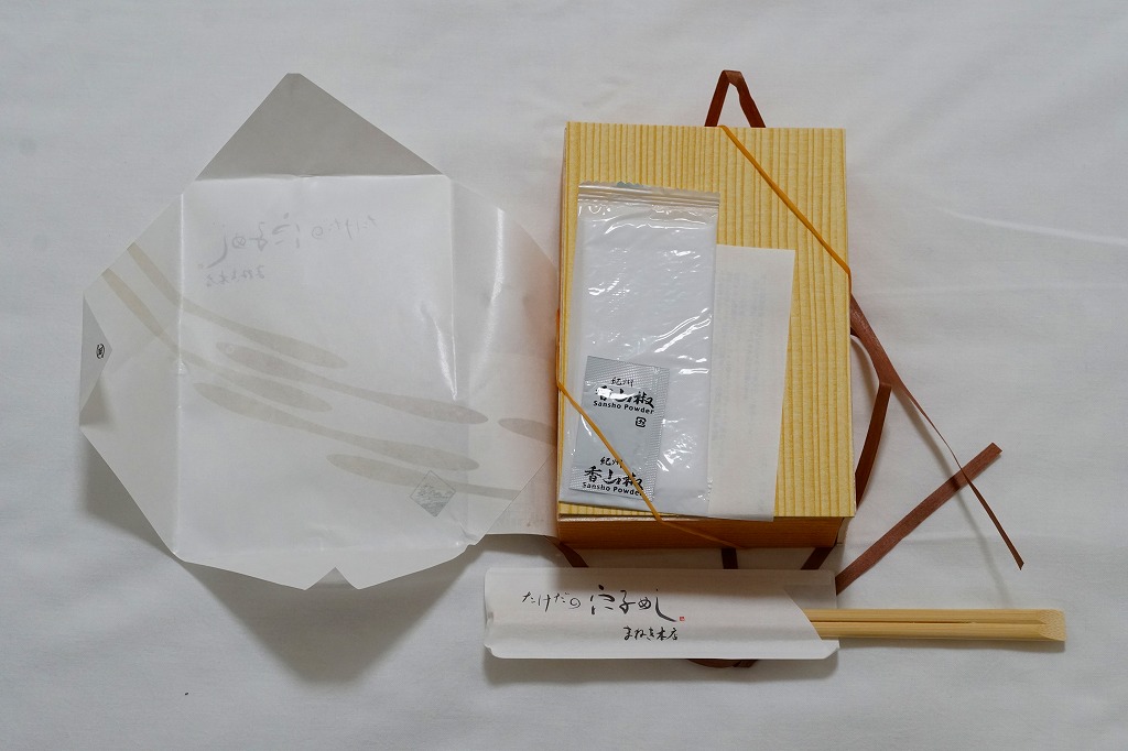 姫路駅の駅弁屋が2020(令和2)年8月7日に、姫路駅前にオープンした穴子飯専門店「たけだの穴子めし」で販売する持ち帰り弁当。税別1,650円のこれと、税別1,200円の(小)のみの販売で、営業を開始した。新作なのにとても古めかしい、歴史と伝統がありそうな姿をしている。