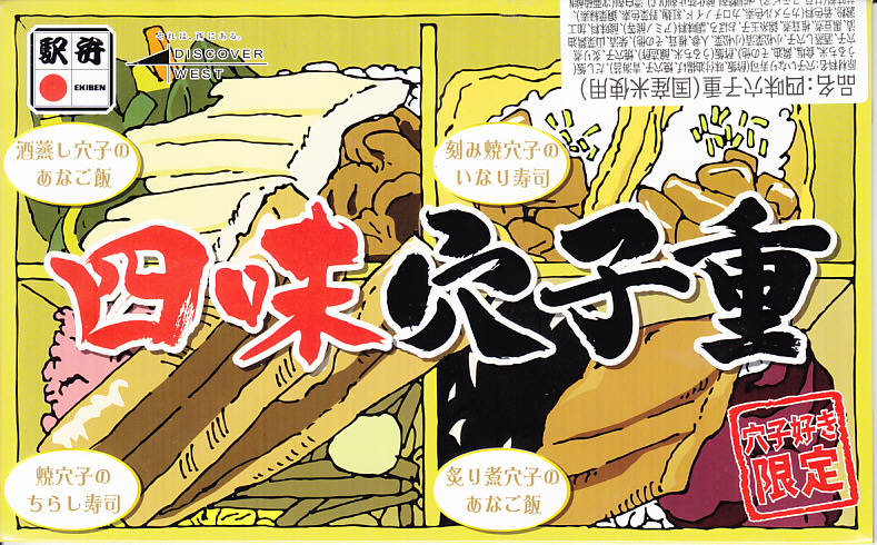 2019(平成31)年1月の京王百貨店の駅弁大会での実演販売でデビューか。同催事の目玉企画「四味食べ比べ対決!」で、米沢駅「味くらべ牛肉どまん中」や稚内駅「食べくらべ四大かにめし」と実演販売で販売個数を対決した。姫路駅の駅弁でもよく使われるアナゴについて、酒蒸し穴子のあなご飯、焼穴子のちらし寿司、炙り煮穴子のあなご飯、刻み焼穴子のいなり寿司で4種の味にして、4区画の容器に詰めた。とはいえ、個々のアナゴが少量なので、味の違いはとくになし。全体のアナゴも少量なので、姫路駅弁ならば「名代あなご寿司」などの棒寿司や、味がひとつのアナゴ駅弁のほうが良いかと思った。2022年までの販売か。