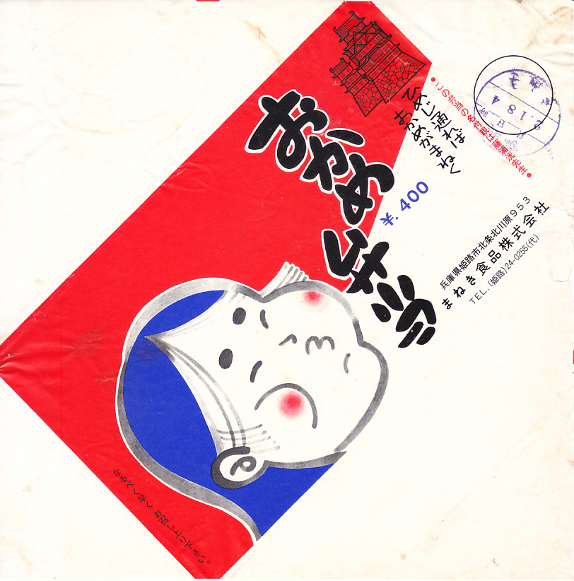1970年代、昭和50年前後の、2月18日4時の調製と思われる、おかめ弁当の掛紙。鉄道に関する記述がないため、駅弁でなく仕出し弁当の掛紙だと思う。姫路駅にしかない駅弁「おかめ弁当」の名前を持つ。ここに「この弁当の名付親は藤浦洸先生」という、駅弁の記事や文献などで見たことがないことが記された。戦前戦後の昭和時代に美空ひばりなどのヒット曲を量産した作詞家の藤浦洸(ふじうらたけし)のことか。「ひめじ通ればおかめがまねく」のキャッチフレーズもある。
