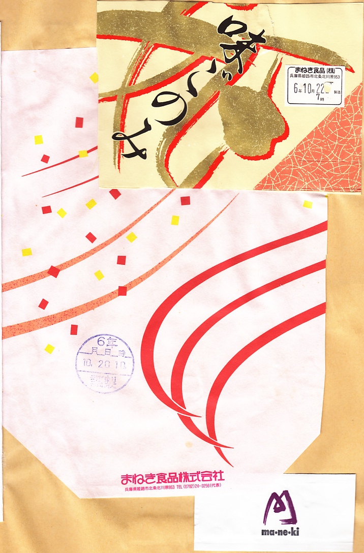 1994(平成6)年10月22日7時または20日10時の調製と思われる、昔の姫路駅弁の掛紙の一部。損壊が大きく情報が少ない。