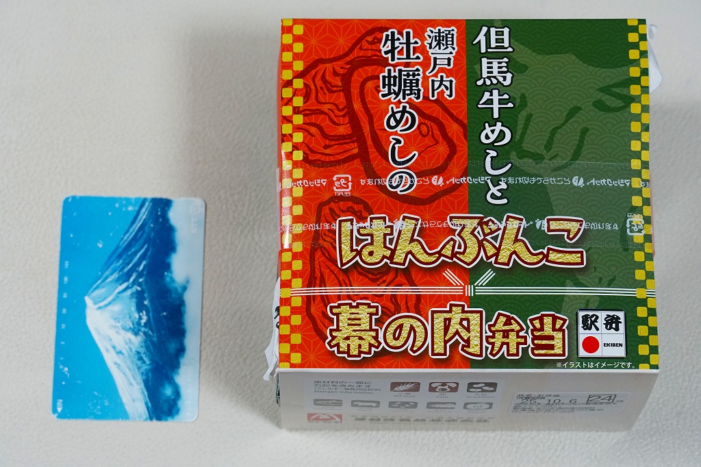 2025(令和7)年の9月までに姫路駅などで発売か。緑色と橙色の紙容器を縦に重ね、商品名を記した同色のスリーブにはめる。中身は緑色の部分が「但馬牛めし」で、だし飯を牛肉とごぼうの煮物で覆い、根菜などの煮物や黒花豆などを添えるもの。橙色の部分が「瀬戸内牡蠣めし」で、牡蠣だし飯に牡蠣の蒸し焼きを3個並べて、ひじき煮と玉子焼きとちくわ磯部揚げと小松菜漬を添えるもの。牛めしと牡蠣めしではんぶんこ、さらに御飯とおかずではんぶんこ。「幕の内弁当」の要素は、まったくないと思う。