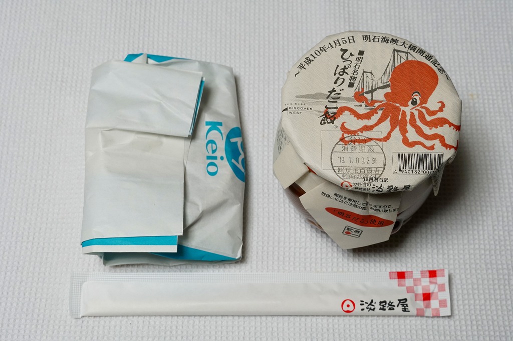2019(平成31)年1月の京王百貨店の駅弁大会で販売。西明石駅弁「ひっぱりだこ飯」について、本体と同じ素材のふたを付けたもの。下記のとおり11年前の販売を覚えていたので、今回はどのように売るのか楽しみにしていたら、通常版にふたを別添する形で販売した。つまり、ふたを270円で買ったようなもの。同月の阪神百貨店の駅弁大会でも販売した。